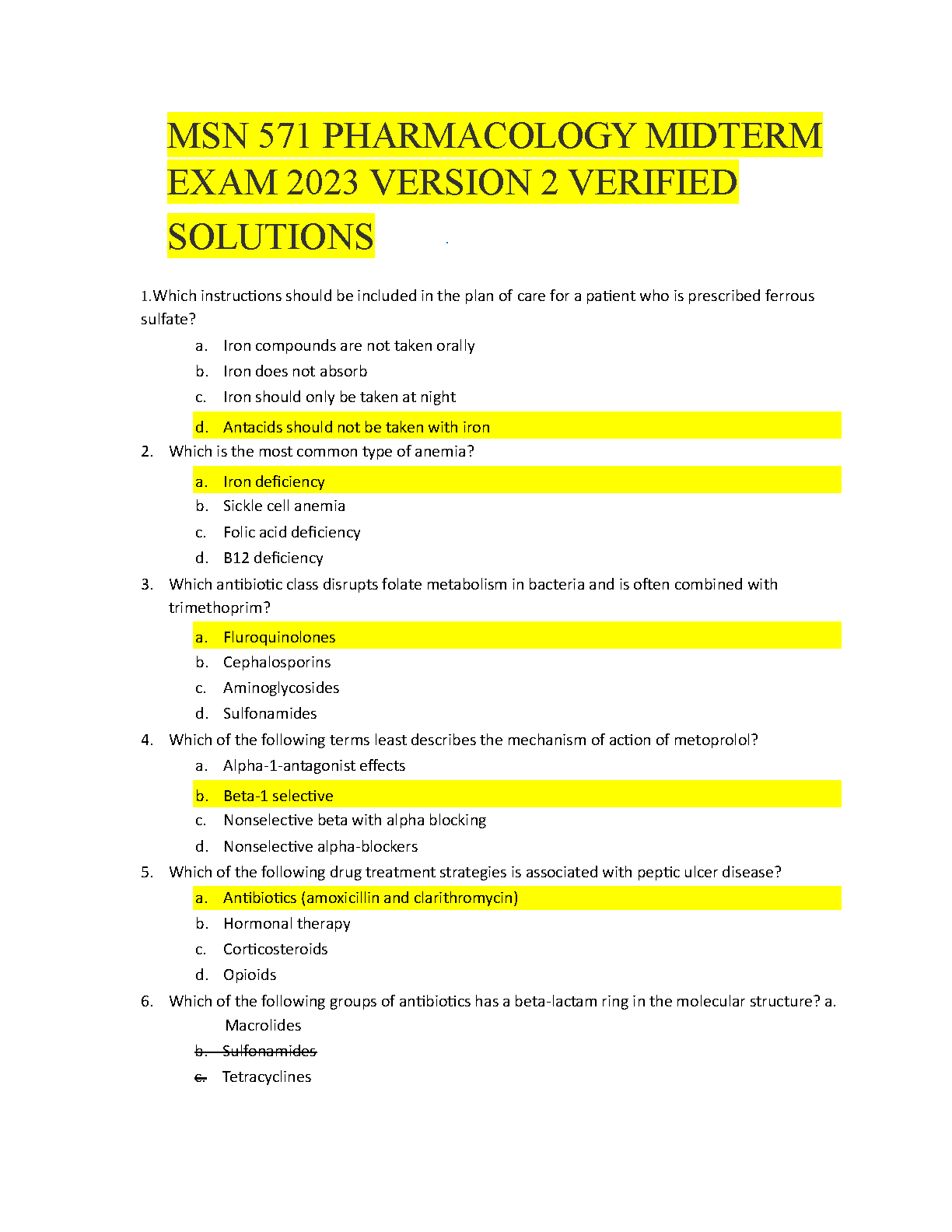 Ace Your MSN 571 Pharmacology Midterm: 2023 Version 2 Test Bank with Verified Q&A