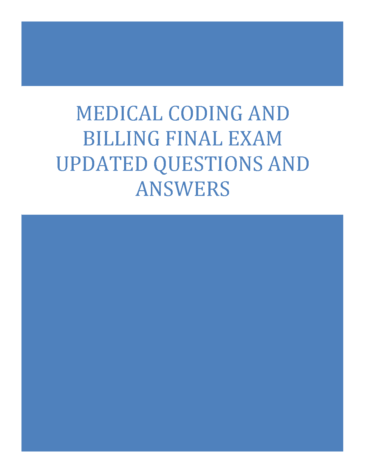 Struggling to prepare for your Medical Coding and Billing final exam? This comprehensive test bank is your ultimate study partner! Featuring the latest updated questions and detailed, verified answers for the 2025/2026 academic year, this resource is meticulously designed to cover all key topics. Master complex concepts and feel confident on exam day. Our guide is the most effective tool to help you pass on your first attempt and avoid costly resits. Get instant access to the material you need to succeed!