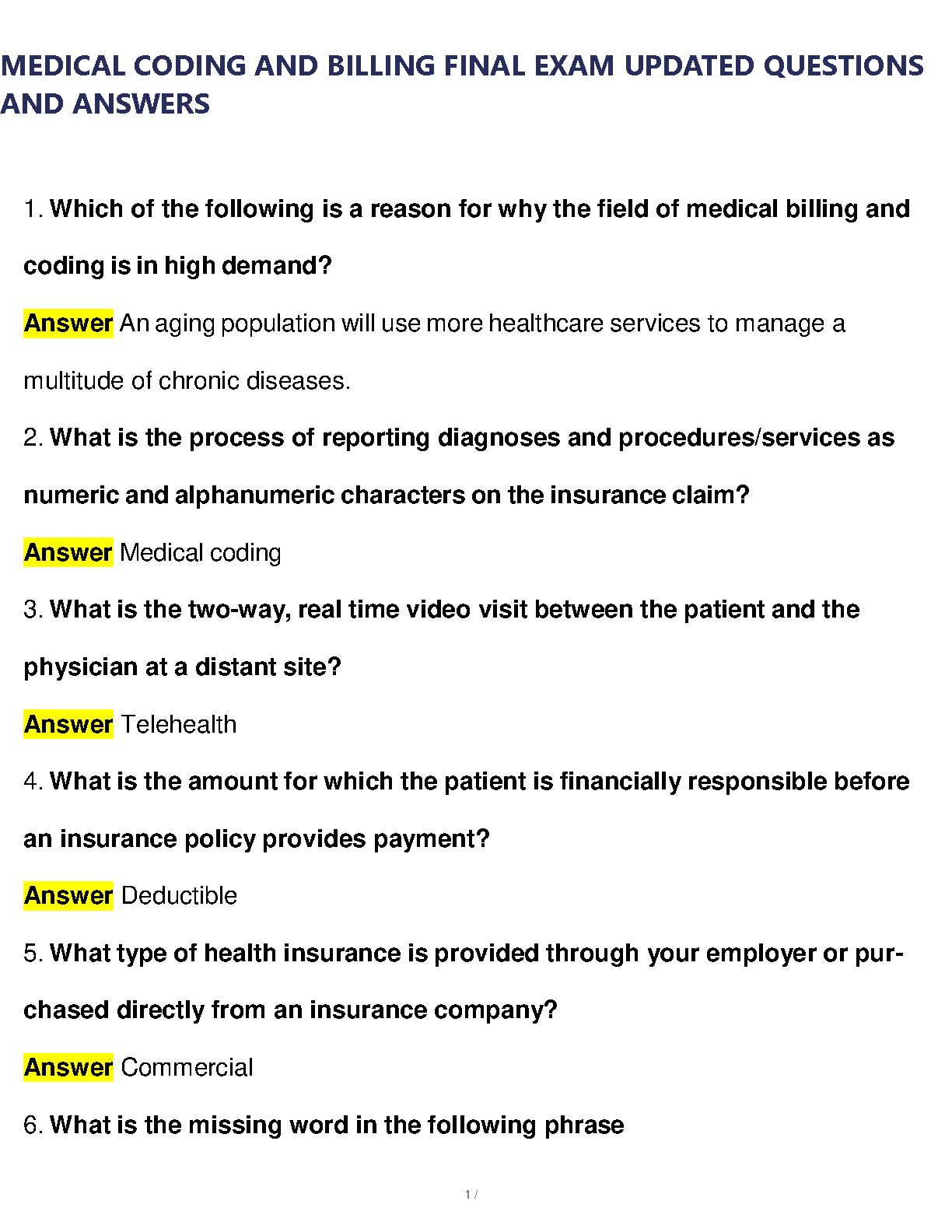 Ace Your Medical Coding & Billing Final Exam 2025/2026: Comprehensive Test Bank with Updated Questions and Answers