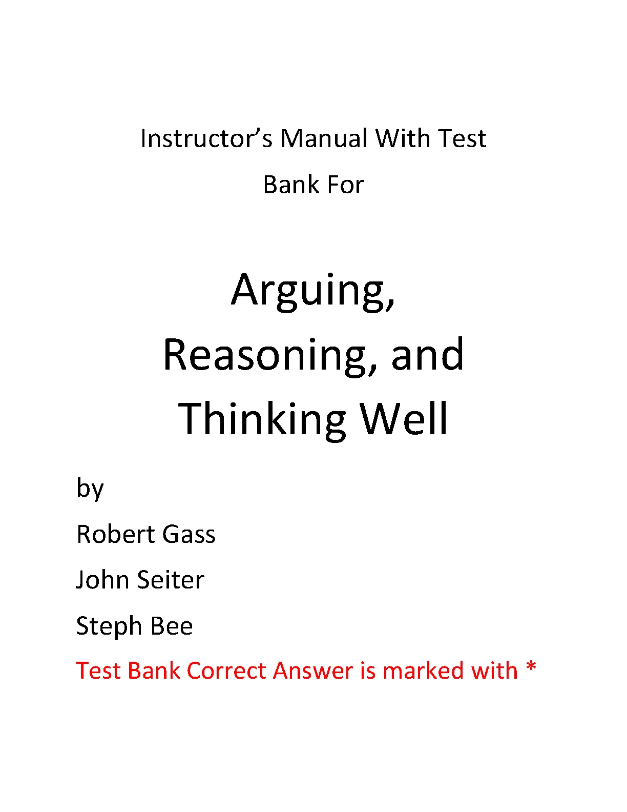Instructor’s Manual With Test Bank For Arguing, Reasoning, and Thinking Well 1ST EDITION by Robert Gass John Seiter Steph Bee. DOWNLOAD on www.hackedexams.com INSTANTLY.
