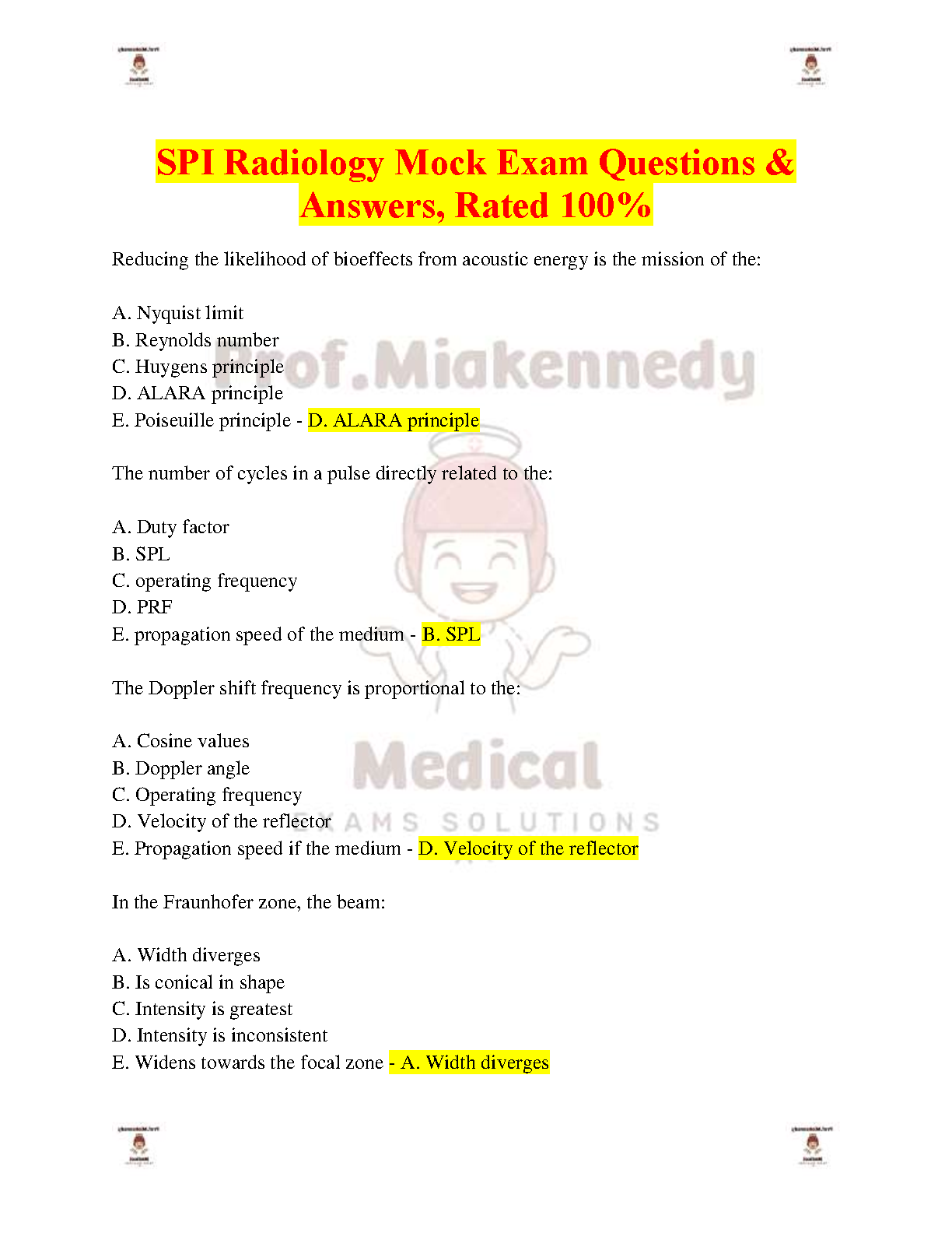 Ace your ARDMS SPI exam on the first attempt with our comprehensive 2025/2026 test bank! This essential study resource provides a vast collection of Sonography Principles and Instrumentation practice questions, each complete with 100% accurate and verified answers. Designed to mirror the actual exam format, this guide will help you master key concepts in ultrasound physics and radiology, boost your confidence, and eliminate the need for costly resits. Download now and take the first step towards your sonography certification!