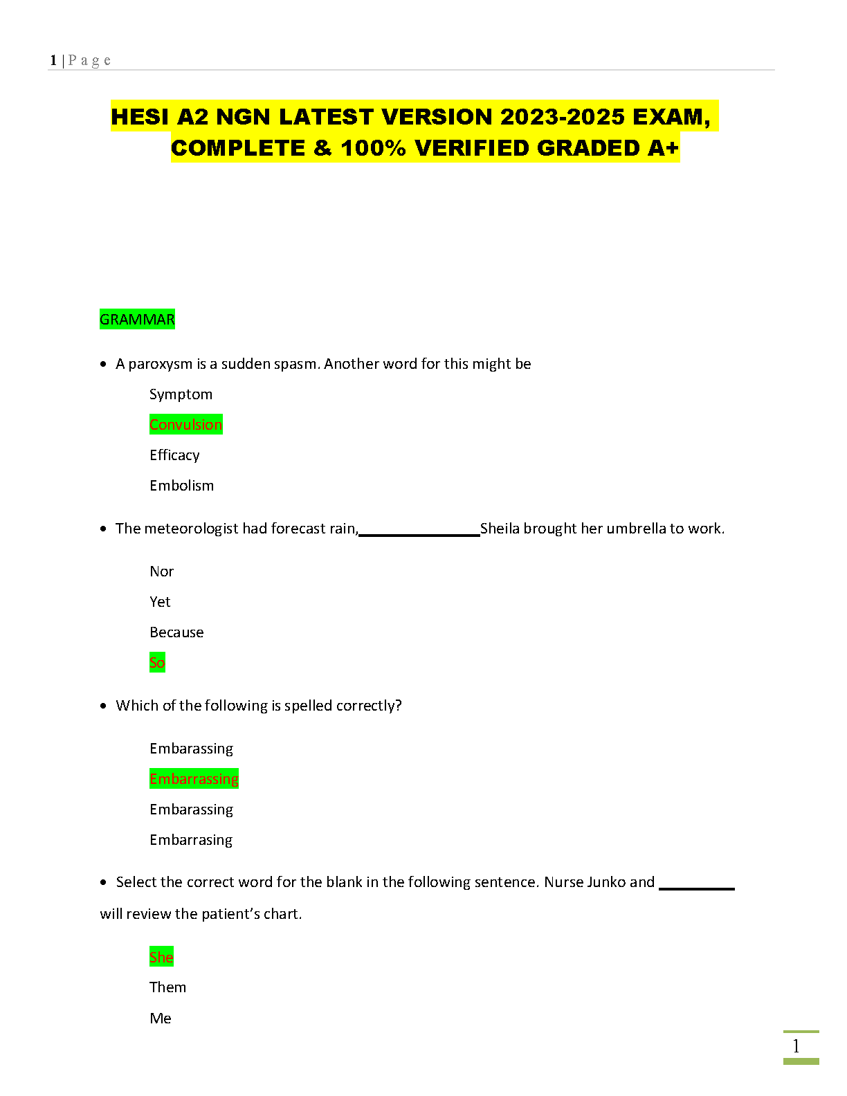 Ace your HESI A2 NGN exam with confidence using our comprehensive test bank for the 2023-2025 period. This meticulously compiled resource features a complete set of questions and 100% verified answers, mirroring the actual Next Generation exam format. This guide is specifically designed to help you master all subject areas, including the challenging Grammar section, ensuring you achieve an A+ grade. Don't leave your nursing career to chance—prepare with the best materials and pass your HESI A2 exam on the very first try. Download now for instant access and start studying smart!