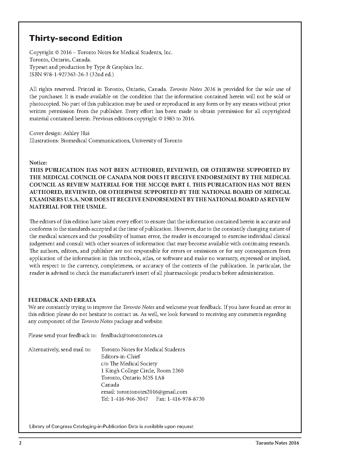 Ace your medical board exams with the newly updated Toronto Notes for the 2025/2026 academic year. This essential resource is your complete medical reference and review guide, specifically designed to help you excel in the MCCQE (Medical Council of Canada Qualifying Examination) and USMLE Step II. Covering all key medical specialties in a concise, easy-to-digest format, Toronto Notes is the go-to study aid for medical students aiming to pass their exams confidently on the first attempt and avoid costly resits. Get the ultimate advantage in your exam preparation today!