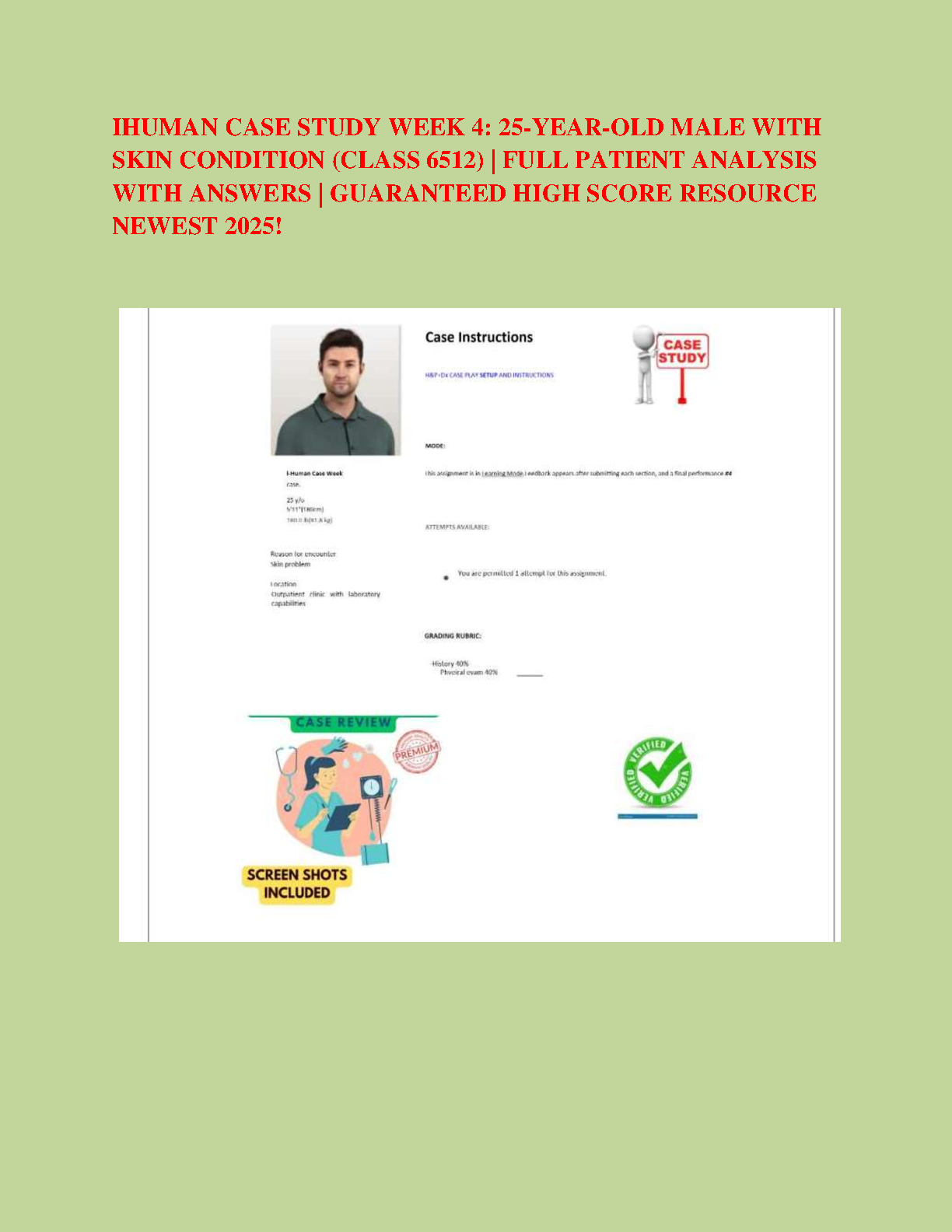 iHuman Case Study Answers: Week 4 - 25-Year-Old Male with Skin Condition (Class 6512) | 2025/2026 Guide to Pass First Time