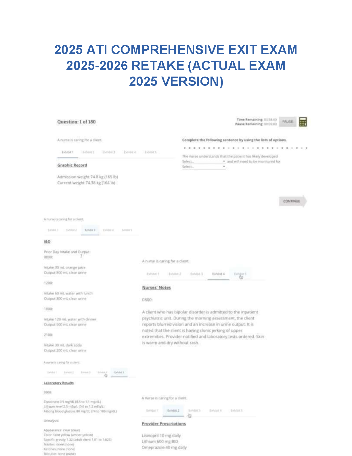 Ace your nursing finals with the definitive study guide for the 2025-2026 ATI Comprehensive Exit Exam Retake. This resource provides an extensive collection of actual exam questions from the latest 2025 version, complete with verified, in-depth answers. Each question is designed to mirror the real exam format, including complex case studies with multiple exhibits, to fully prepare you for what to expect. Boost your confidence, master critical nursing concepts, and ensure you pass the ATI Exit Exam on your very first try. Download now to secure your path to becoming a registered nurse and avoid the stress of retakes!