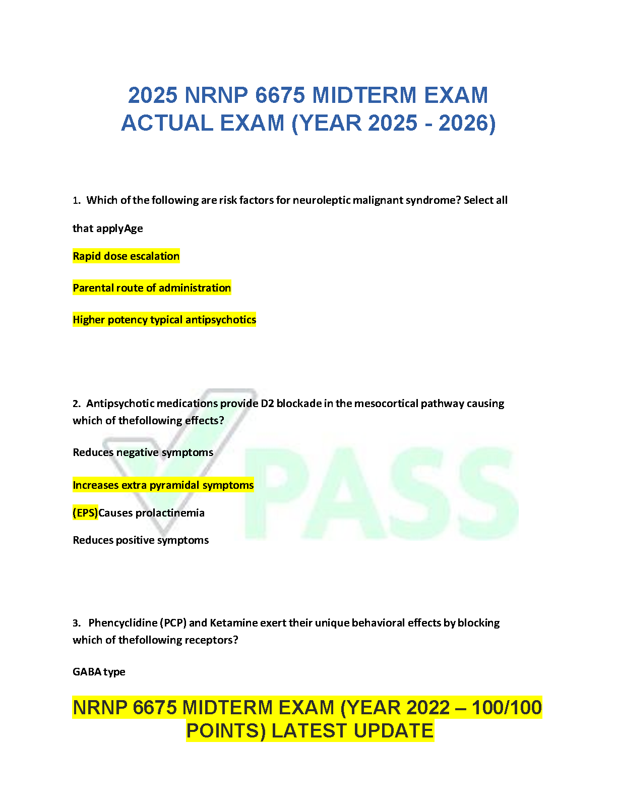 NRNP 6675 Midterm Exam Test Bank (2025-2026): Latest Verified Questions and Answers for a Guaranteed Pass