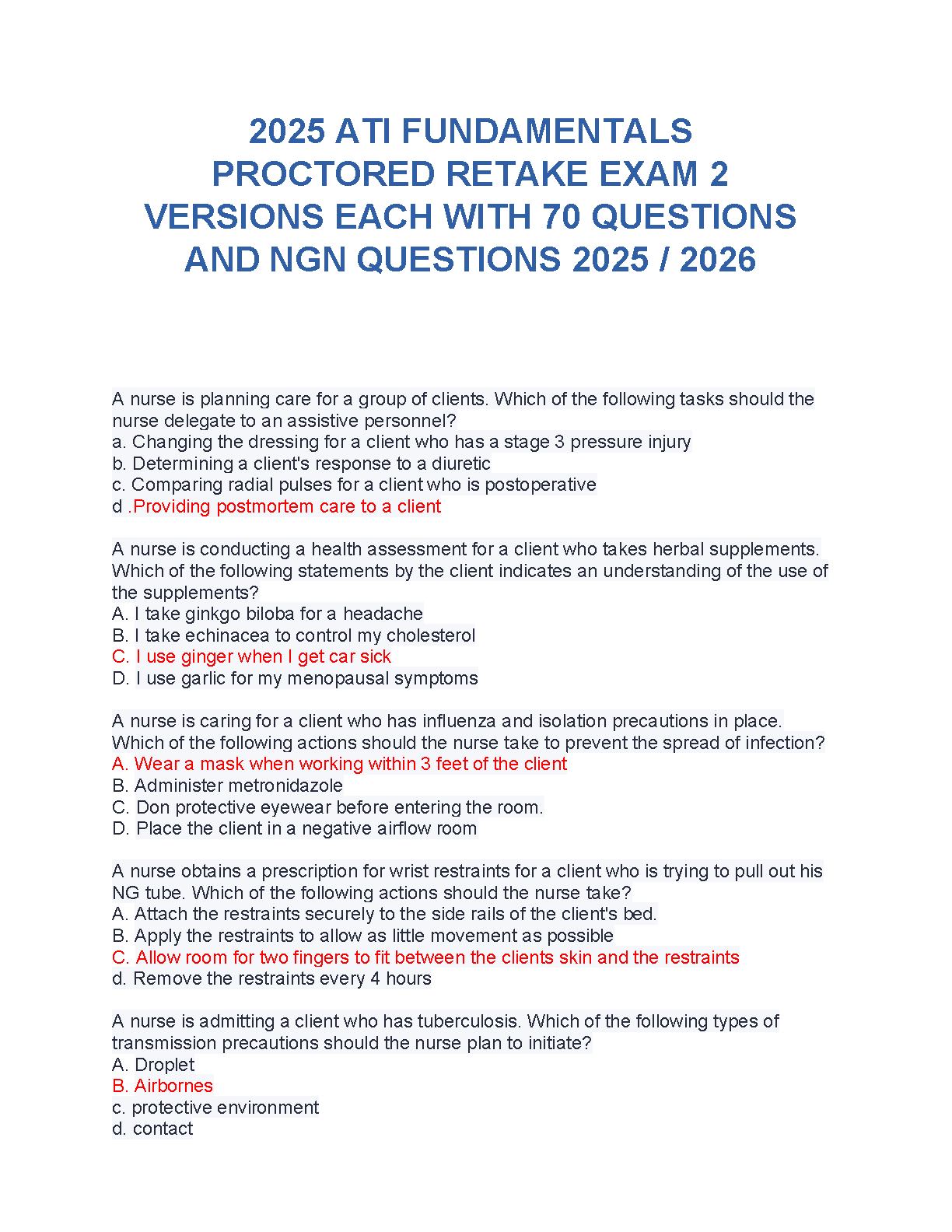 Ace the ATI Fundamentals Proctored Retake Exam 2: Latest 2025/2026 Test Bank with 2 Versions, 70+ Questions & NGN Formats for First-Attempt Success