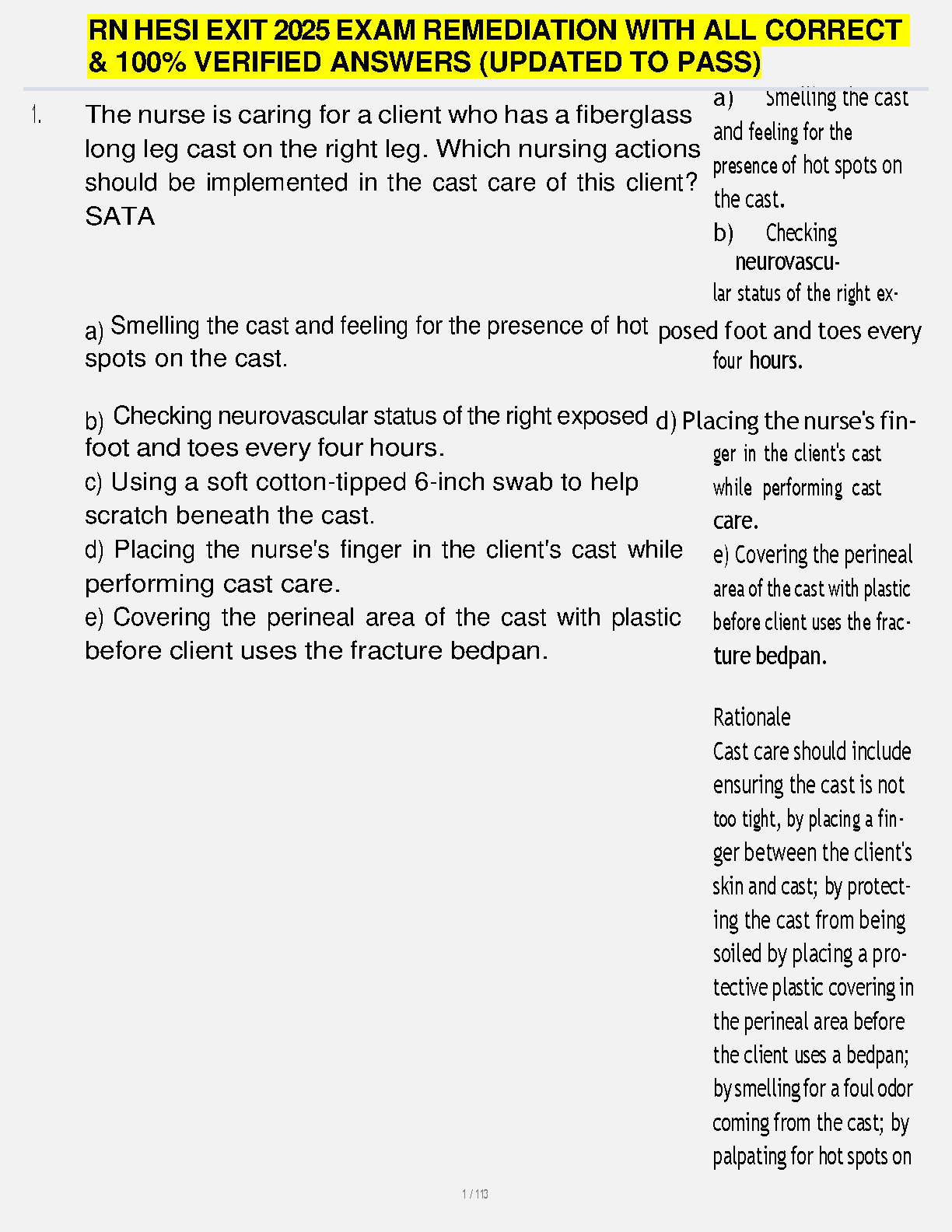 Ace your nursing school finals with our definitive guide for the RN HESI Exit Exam 2025. This comprehensive resource is meticulously designed to ensure you pass on your very first try, eliminating the stress of resits. Inside, you'll find a complete collection of exam questions paired with 100% verified, correct answers and detailed rationales. This updated test bank covers all essential topics, providing the perfect remediation tool to solidify your knowledge and build confidence. Get the latest 2025/2026 edition and take the final step toward your RN career with certainty.