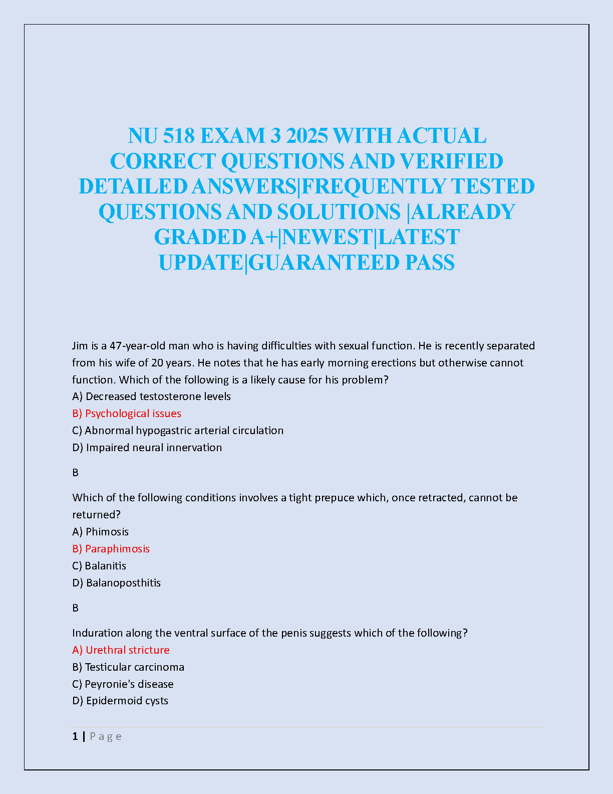 Master your upcoming NU 518 Exam 3 with our expertly crafted test bank for the 2025/2026 academic year. This essential study resource features a comprehensive collection of actual, frequently tested questions complete with verified, detailed answers. Designed to guarantee an A+ grade, our guide helps you understand complex concepts and prepare effectively for the exam format. Invest in your success and pass with confidence on your very first try, avoiding costly resits. Get the latest, updated material for NU 518 and secure your academic success today!