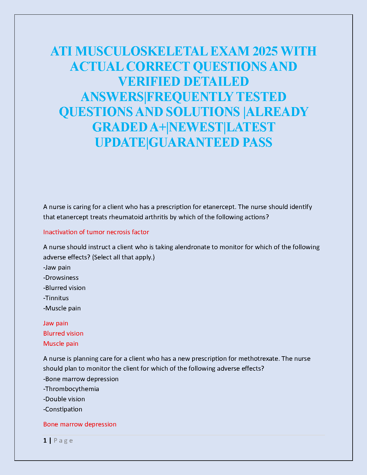 Pass the ATI Musculoskeletal Exam 2025/2026: Newest Edition Test Bank with Actual Questions and Detailed Answers