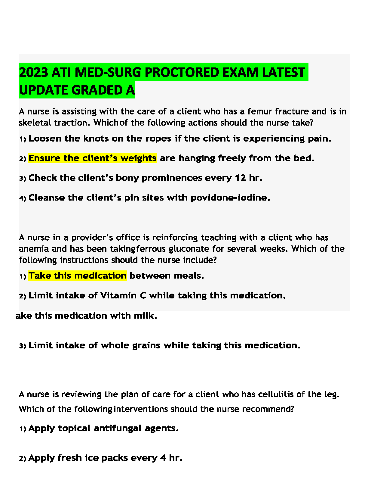 ATI Med-Surg Proctored Exam 2023 Test Bank: Verified Questions & Answers for 2025/2026 Success [Graded A]