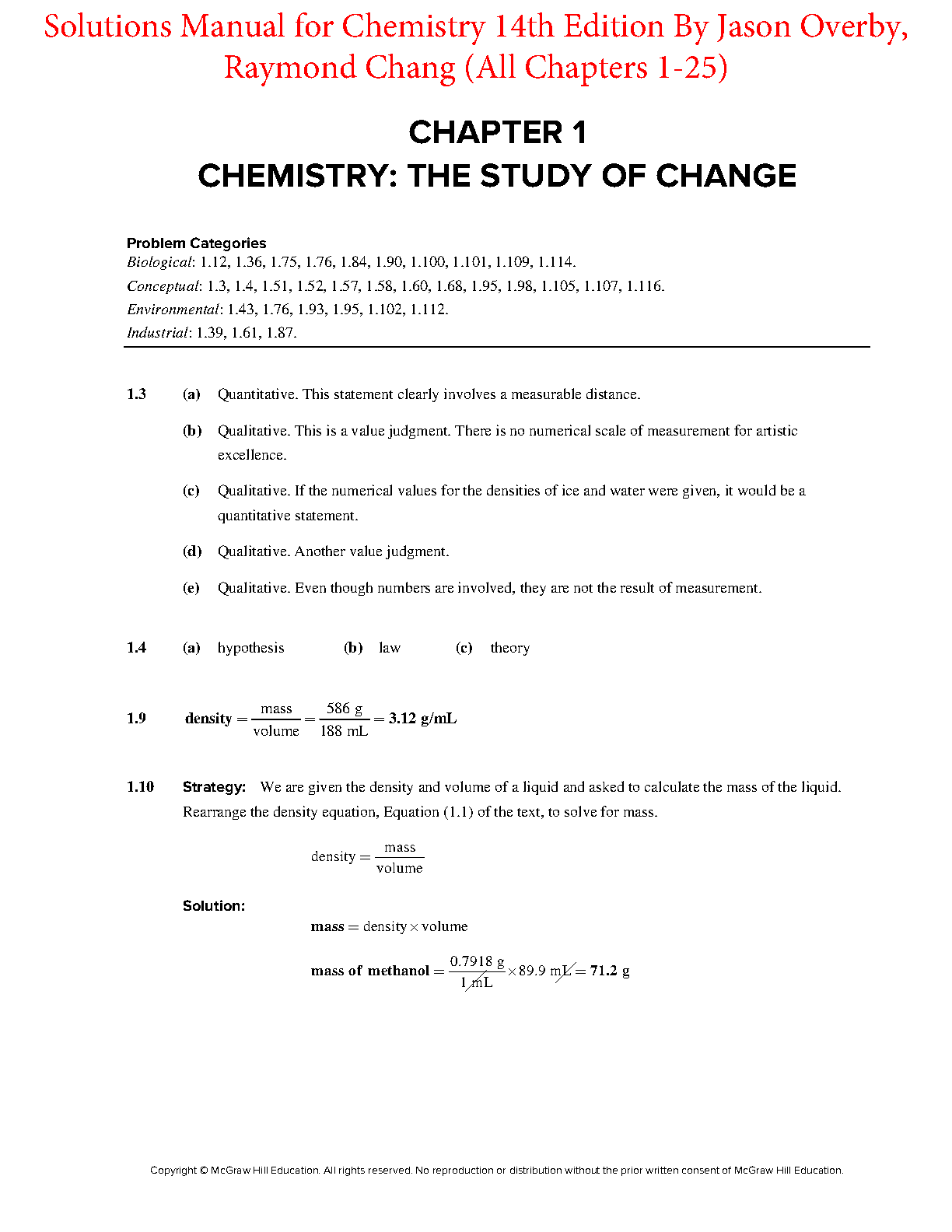 Solutions Manual for Chemistry, 14th Edition by Raymond Chang and Jason Overby