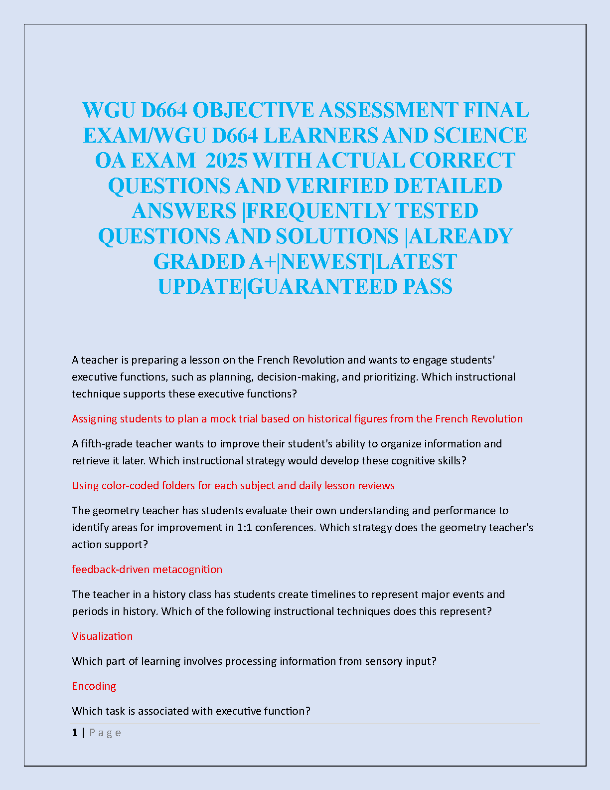 Ace your WGU D664 Learners and Science Objective Assessment on the first try with our ultimate 2025/2026 study resource. This comprehensive test bank is your key to success, featuring a complete collection of the latest exam questions, each with a meticulously verified and detailed answer. Study smarter, build confidence by mastering frequently tested concepts, and walk into your assessment prepared to achieve an A+. Eliminate exam anxiety and avoid resits with this guaranteed path to success.