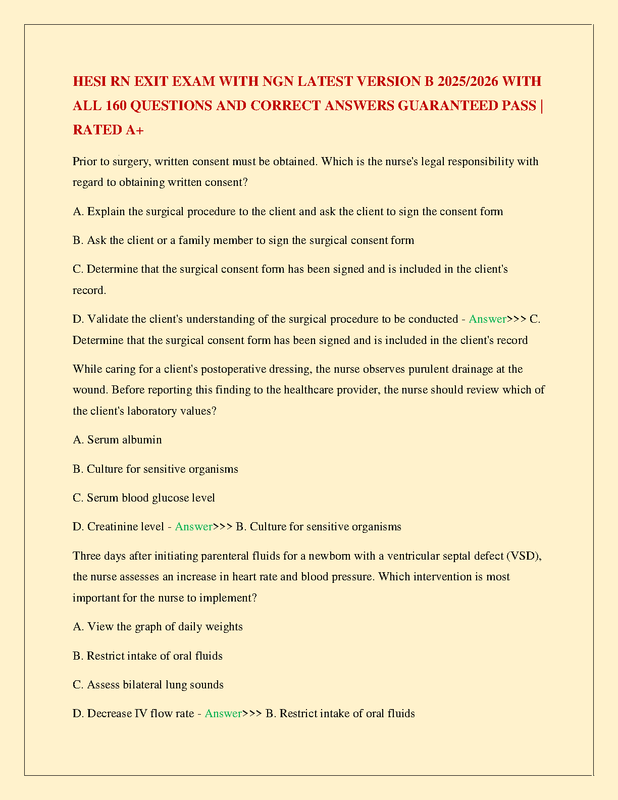 HESI RN Exit Exam NGN Latest Version B (2025/2026): 160 Verified Questions and Answers for a Guaranteed Pass