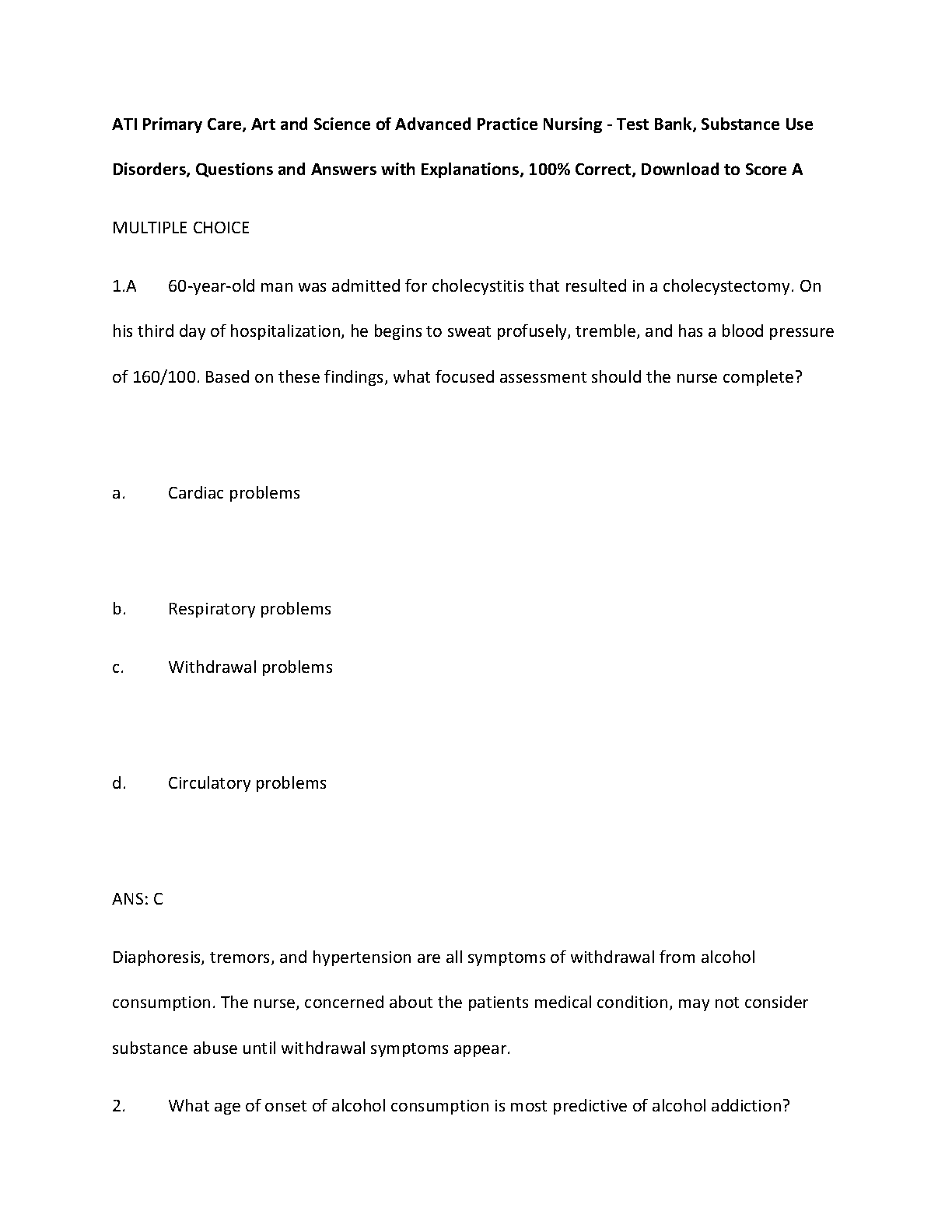 ATI Primary Care, Art and Science of Advanced Practice Nursing Test Bank, Substance Use Disorders, Questions and Answers with Explanations, 100% Correct. DOWNLOAD on www.hackedexams.com INSTANTLY.