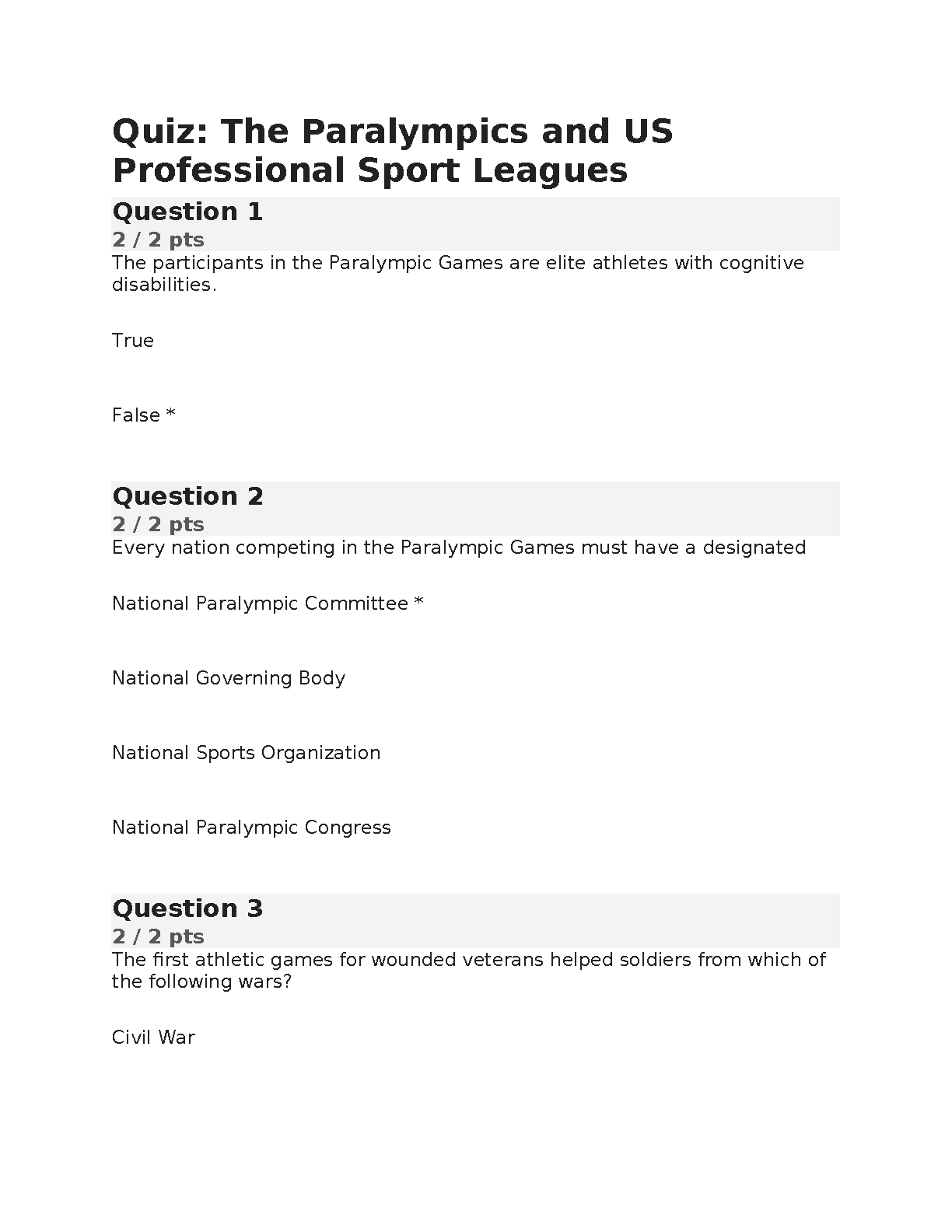 Paralympics and US Professional Sport Leagues Test Bank | Quiz Questions with Verified Answers