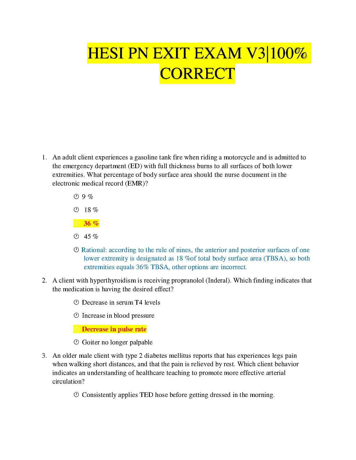 HESI PN Exit Exam V3 (Version 3) Test Bank - 100% Correct Questions & Answers with Rationales for 2025/2026 - Ace Your Exam and Avoid Resits