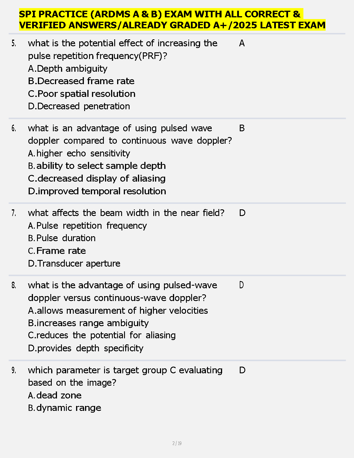 Master the SPI ARDMS Exam 2025: A+ Graded Test Bank with 100% Correct and Verified Questions & Answers for Sonography Principles