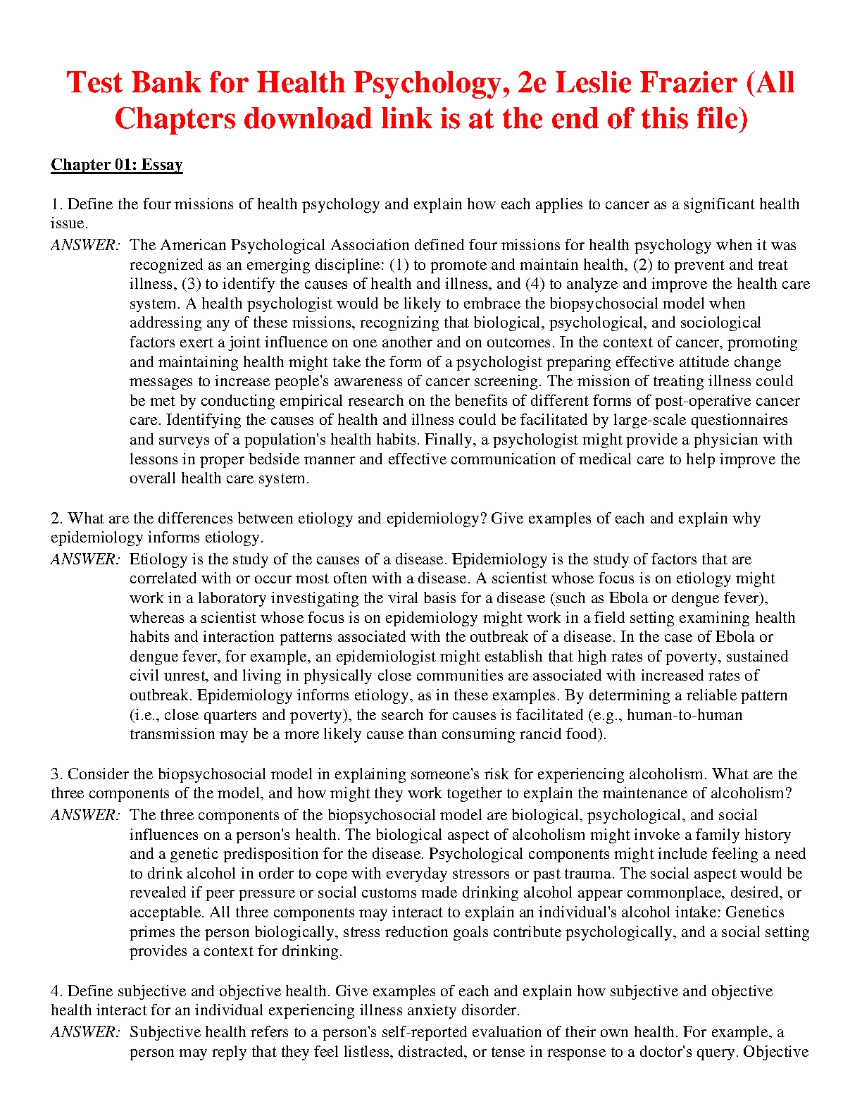 Test Bank for Health Psychology, 2ND EDITION BY Leslie Frazier (All Chapters ). DOWNLOAD on www.hackedexams.com INSTANTLY.