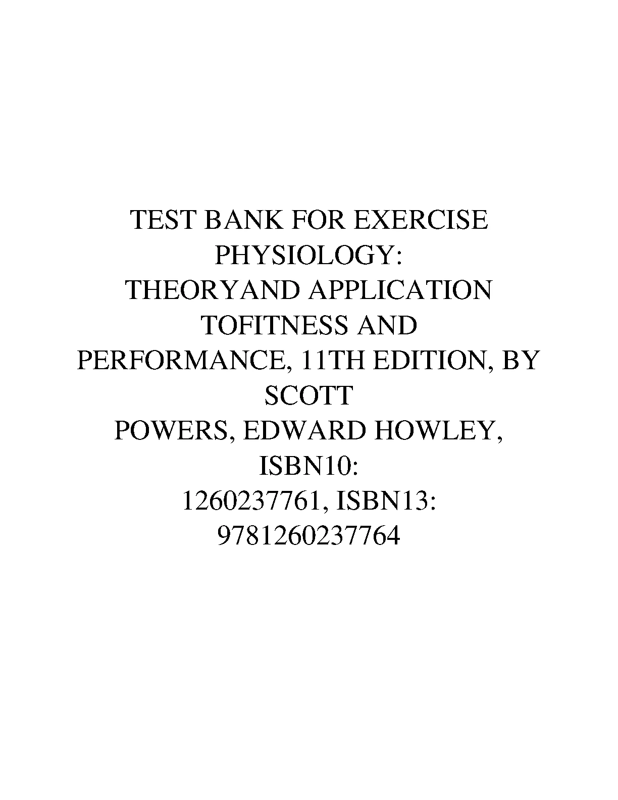 TEST BANK FOR EXERCISE PHYSIOLOGY: THEORYAND APPLICATION TOFITNESS AND PERFORMANCE, 11TH EDITION, BY SCOTT POWERS, EDWARD HOWLEY. DOWNLOAD on www.hackedexams.com INSTANTLY.