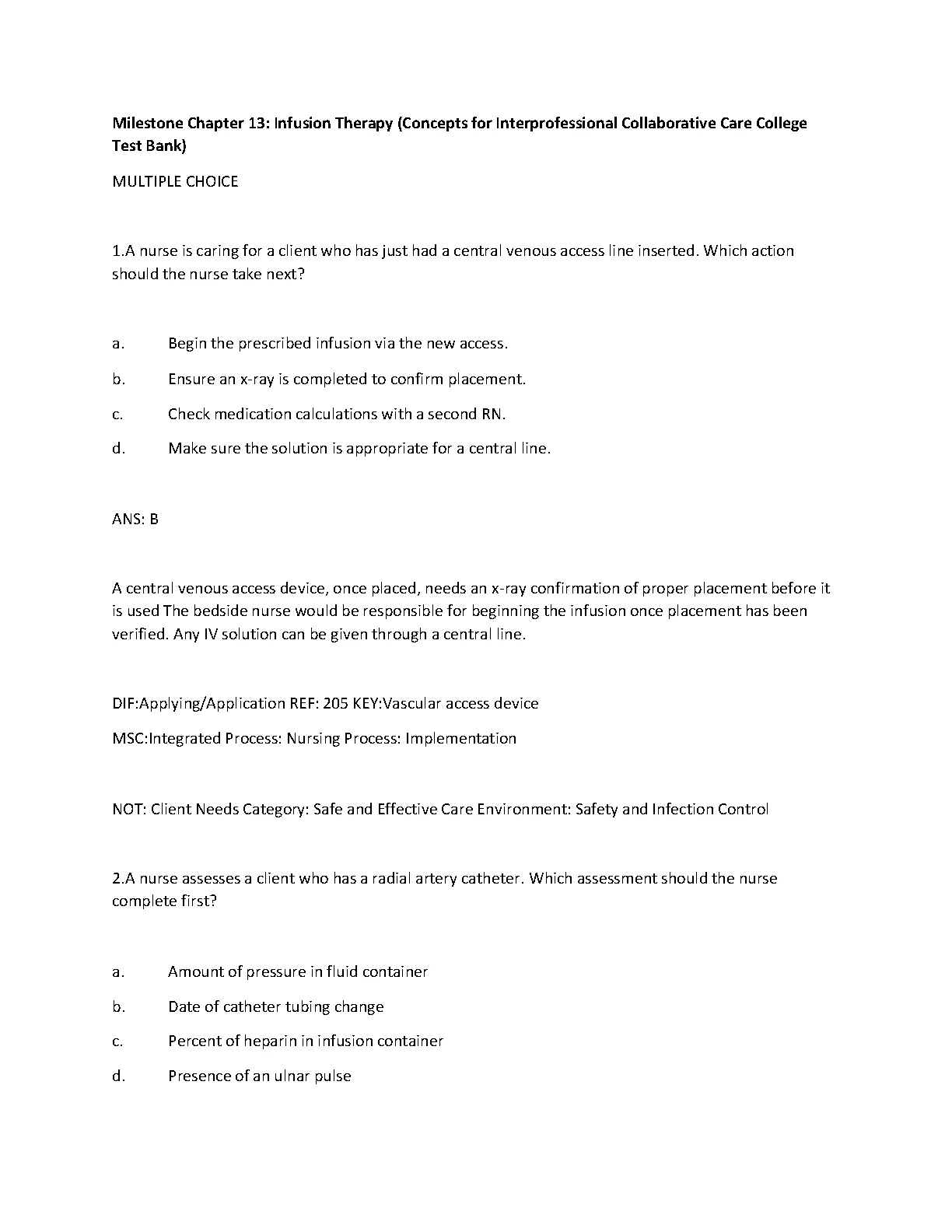 Milestone Chapter 13: Infusion Therapy (Concepts for Interprofessional Collaborative Care College Test Bank). DOWNLOAD on www.hackedexams.com INSTANTLY.
