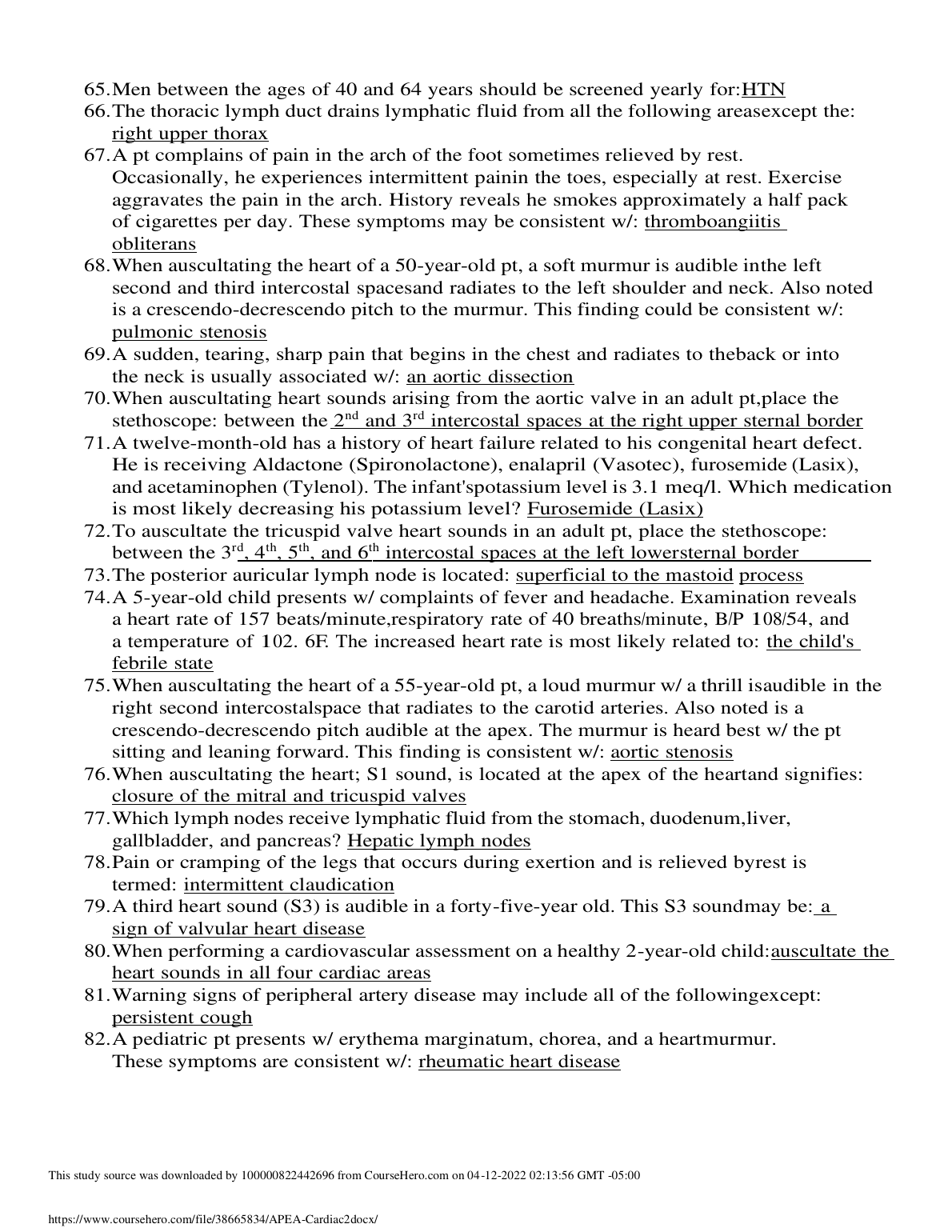 NSG 6020 APEA EXAM CARDIAC UPDATED 2022/2023