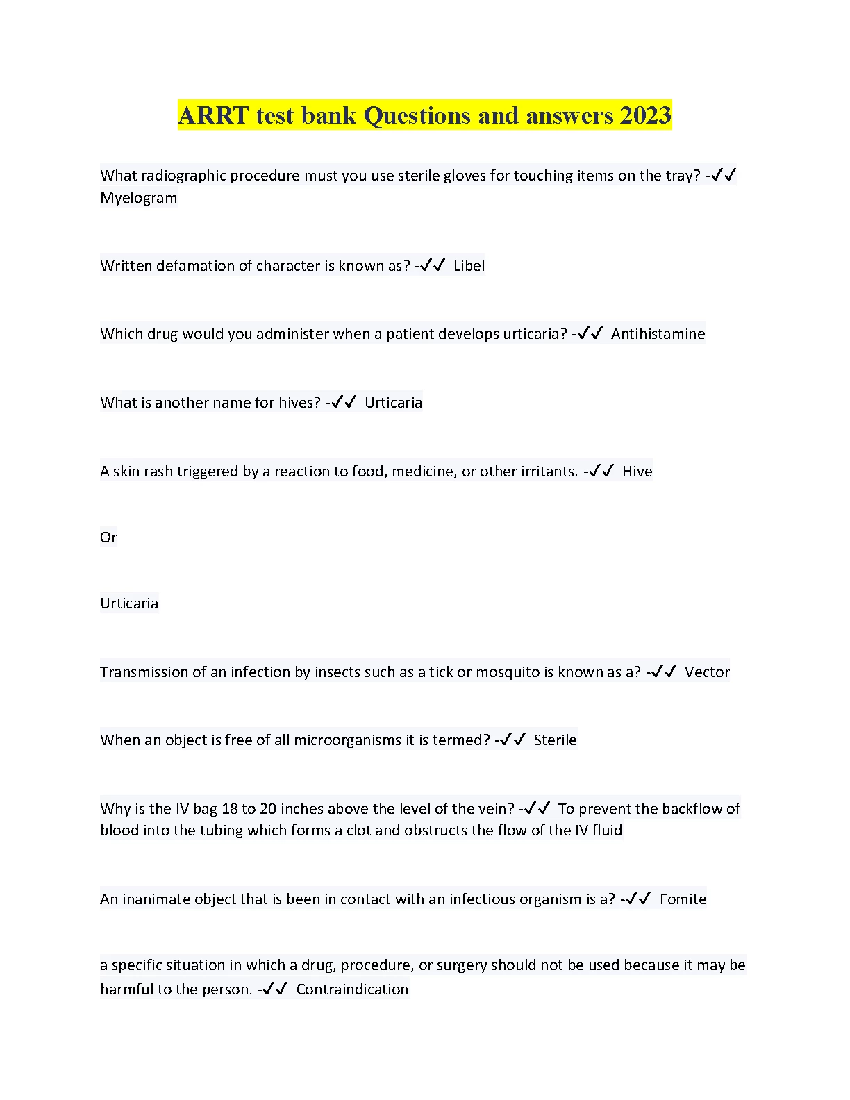 ARRT Test Bank Questions and Answers 2023. DOWNLOAD on www.hackedexams.com INSTANTLY.