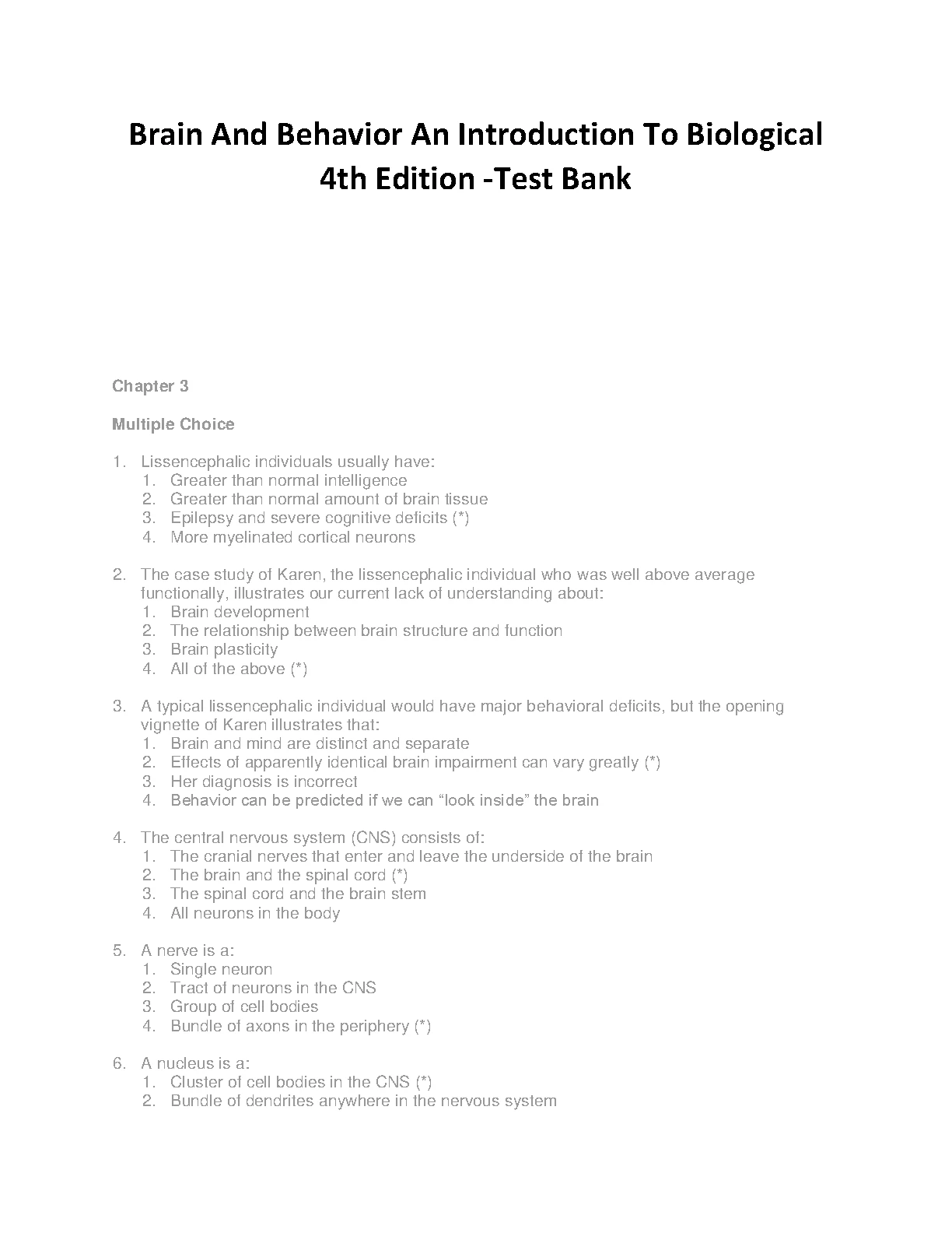 Brain And Behavior An Introduction To Biological 4th Edition -Test Bank