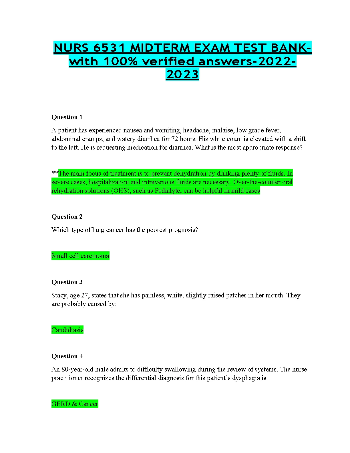 NURS 6531 MIDTERM EXAM TEST BANK with 100% verified answers 2022/2023. DOWNLOAD on www.hackedexams.com INSTANTLY.