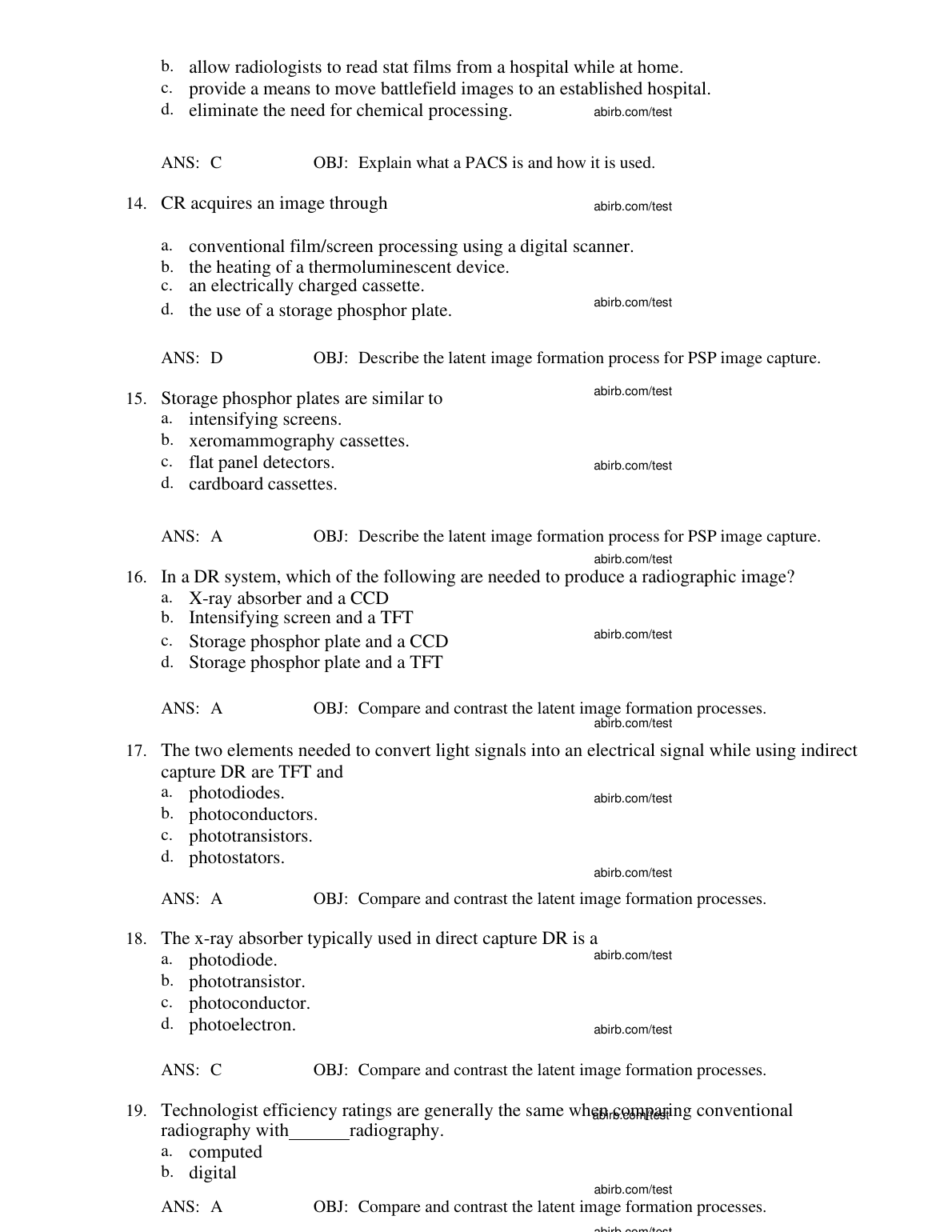 TEST BANK FOR Carter: Digital Radiography and PACS, 3rd Edition