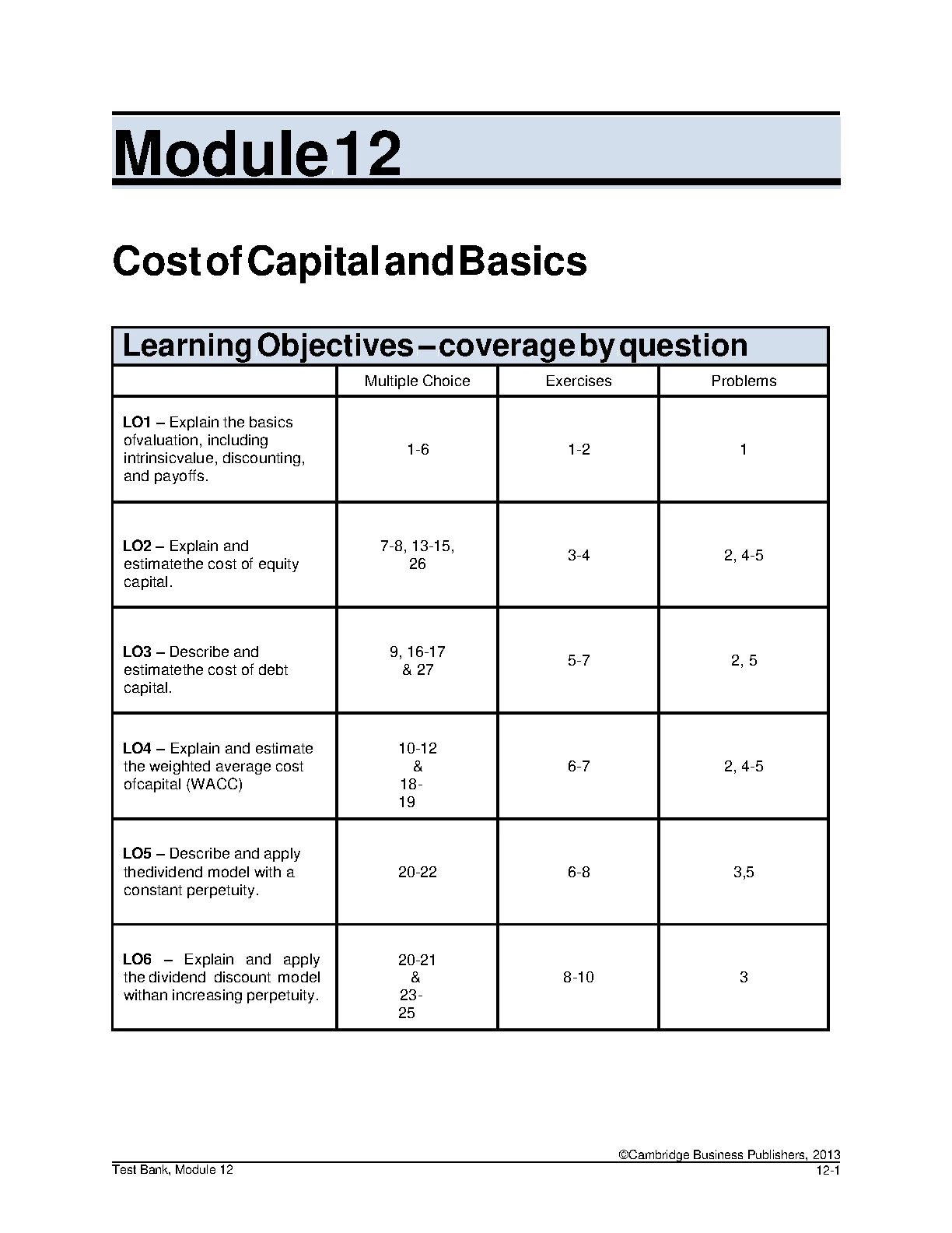 TEST BANK FOR Financial Statement Analysis & Valuation, 3rd EDITION Module I2 Cost of CapitaI and Basics
