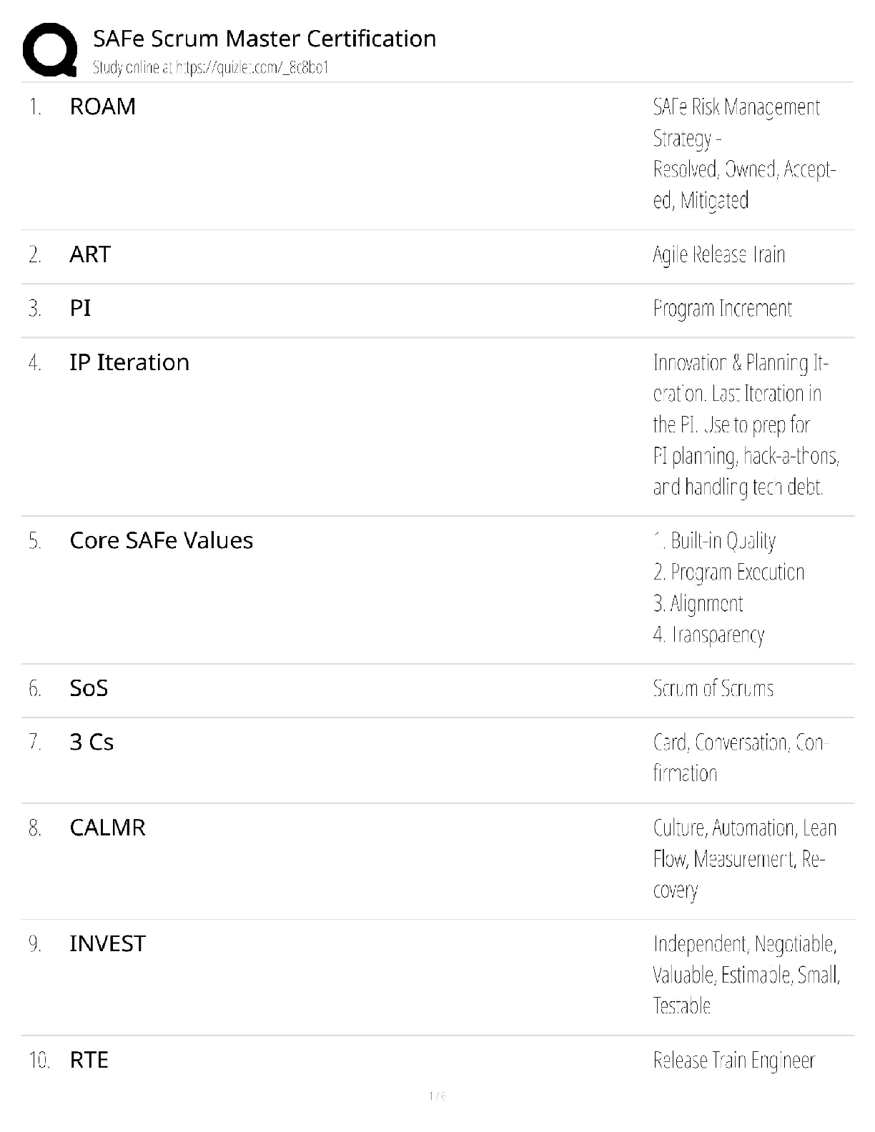 Ace your SAFe 6.0 Scrum Master (SSM) certification exam with ease using our comprehensive and up-to-date study guide for the 2025/2026 academic year. This essential resource provides a detailed breakdown of all the critical acronyms, core values, and key concepts you need to know. From understanding ROAM for risk management and the structure of an Agile Release Train (ART) to mastering the principles of Program Increments (PI) and the INVEST criteria, this guide has you covered. Designed specifically to help you pass on your very first attempt, this guide simplifies complex SAFe terminology and ensures you have the foundational knowledge required for success. Stop worrying about resits and start your journey to becoming a certified SAFe Scrum Master today!