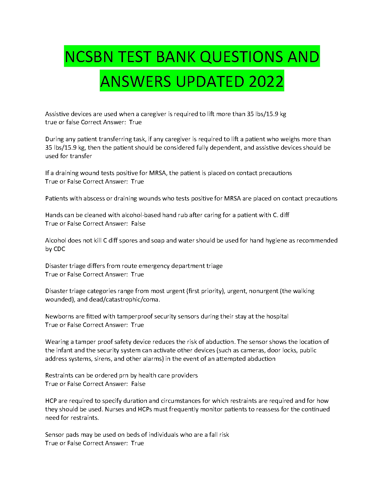 NCSBN TEST BANK QUESTIONS AND ANSWERS UPDATED 2022/2023