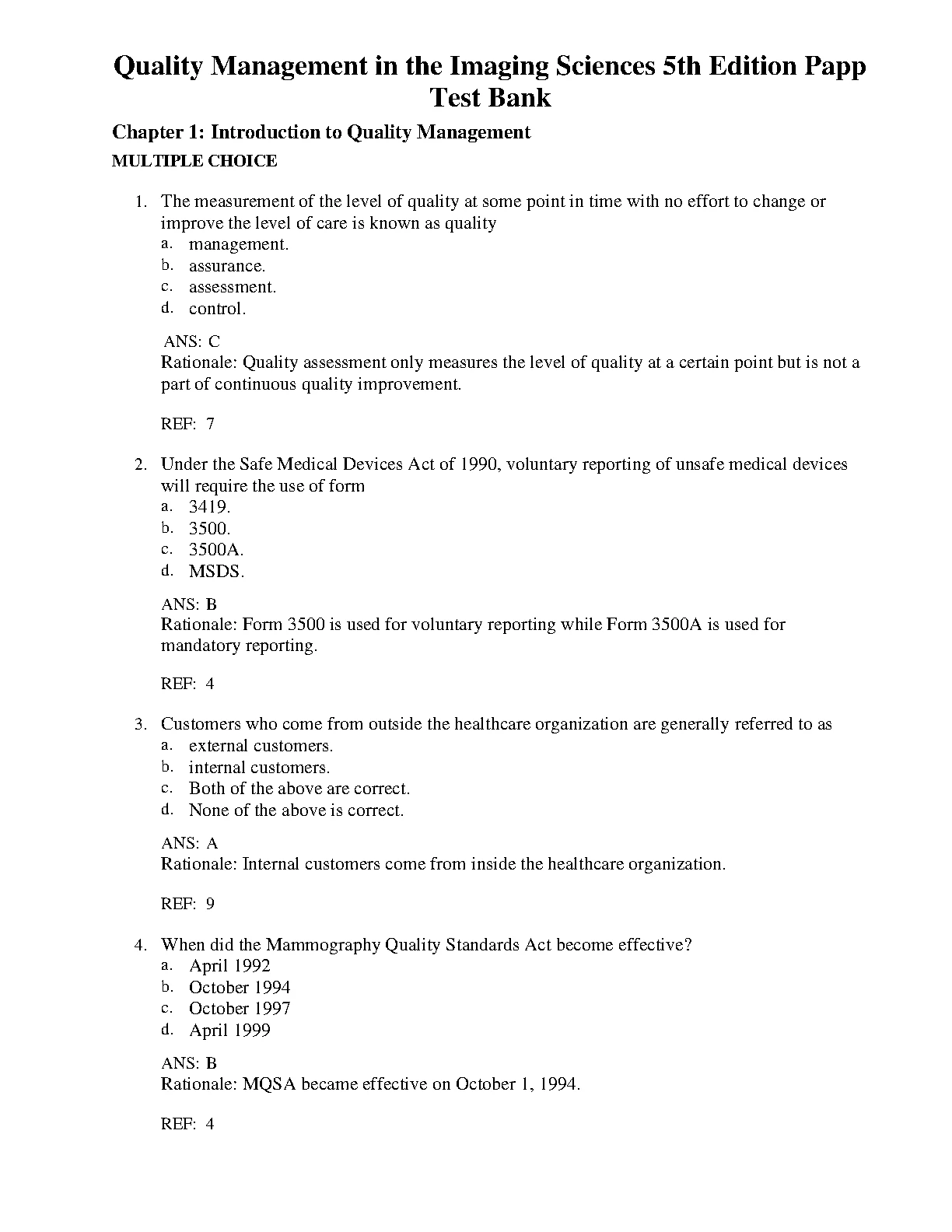Quality Management in the Imaging Sciences 5th Edition Papp Test Bank