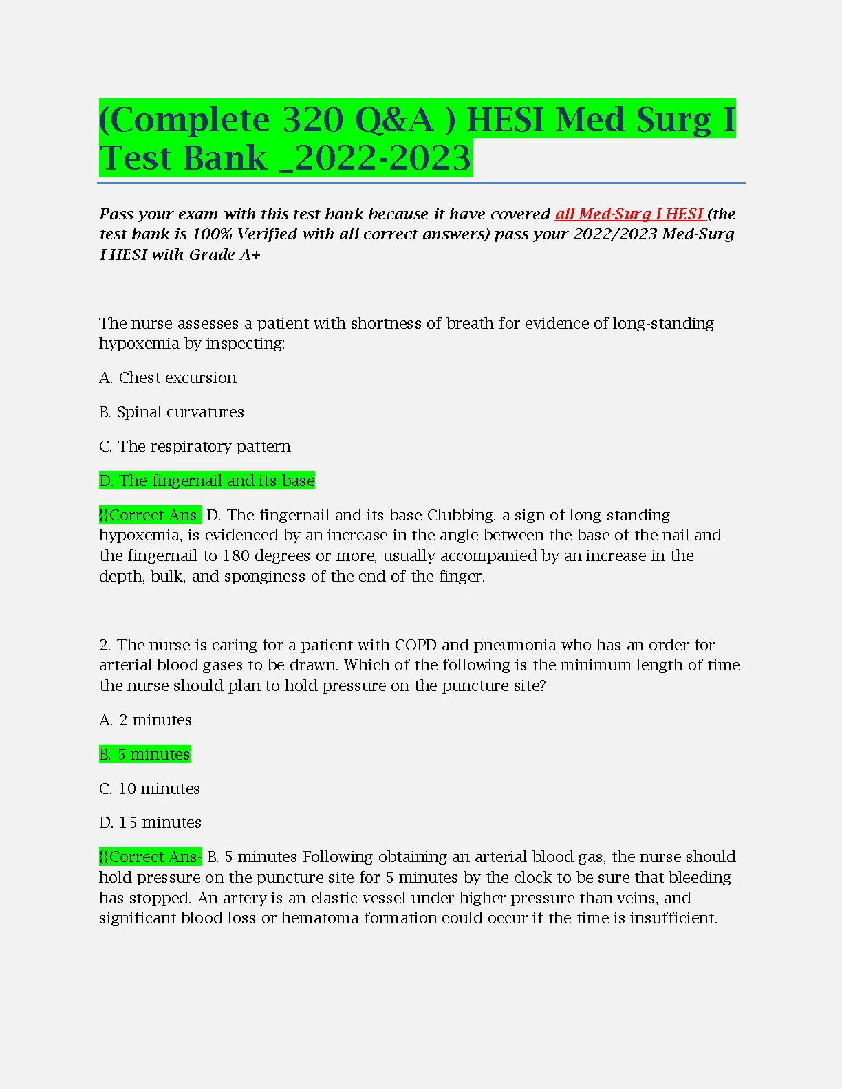 (Complete 320 Q&A ) HESI Med Surg Test Bank 2022/2023. DOWNLOAD on www.hackedexams.com INSTANTLY.