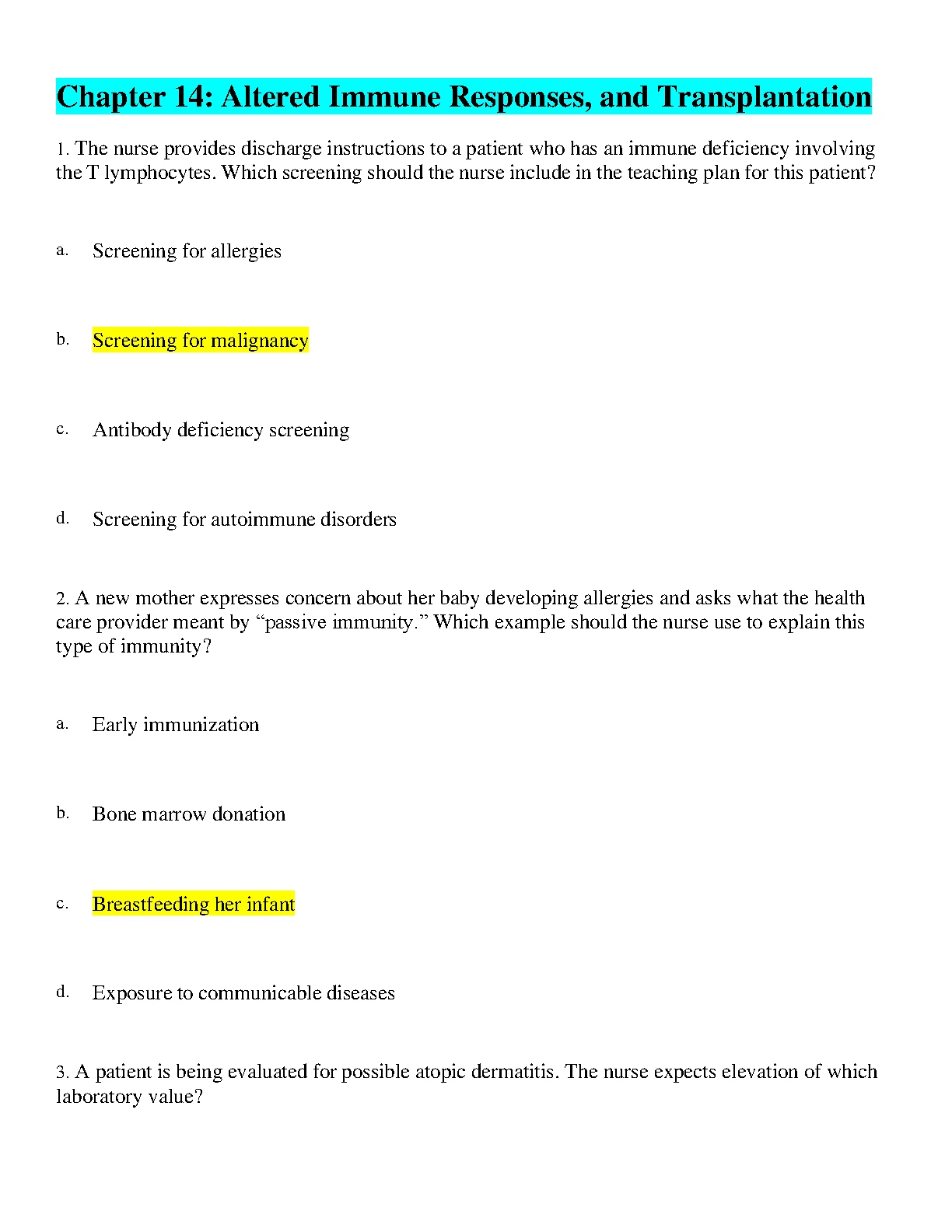 TEST BANK FOR Chapter 14: Altered Immune Responses, and Transplantation
