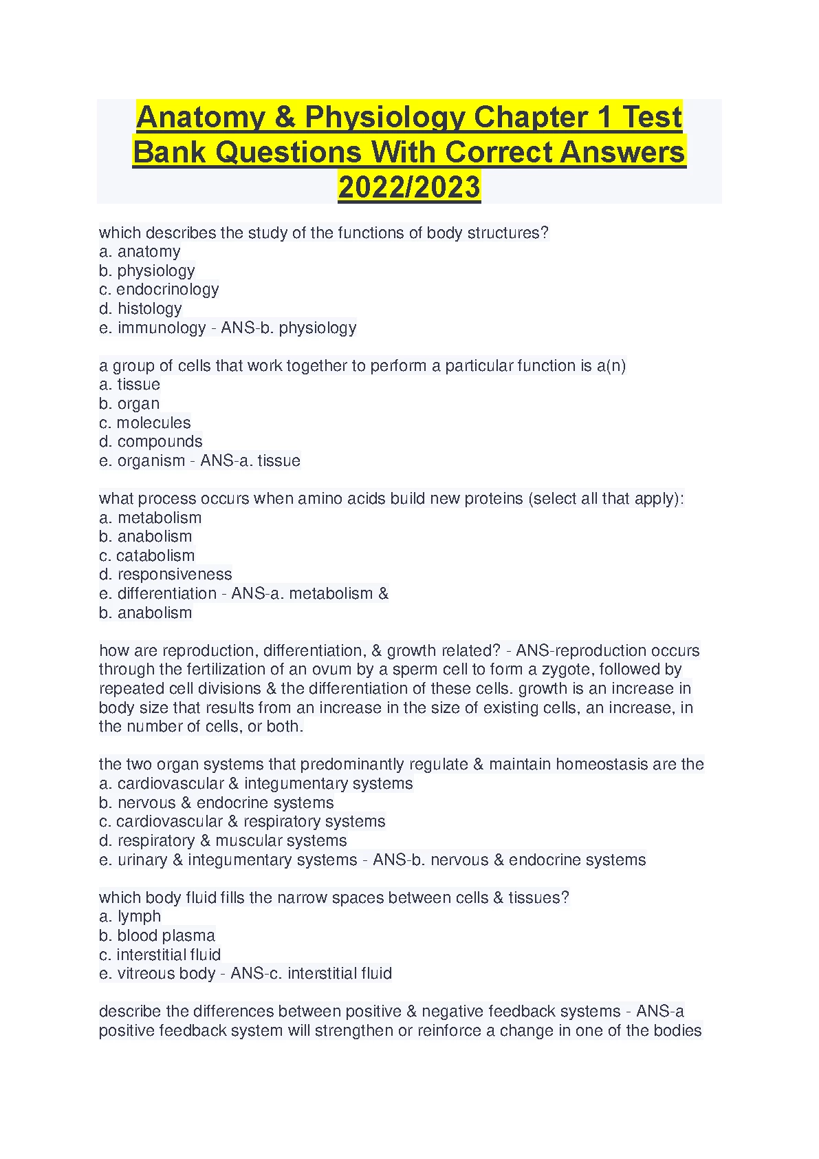 Anatomy & Physiology Chapter 1 Test Bank Questions With Correct Answers 2022/2023. DOWNLOAD on www.hackedexams.com INSTANTLY.