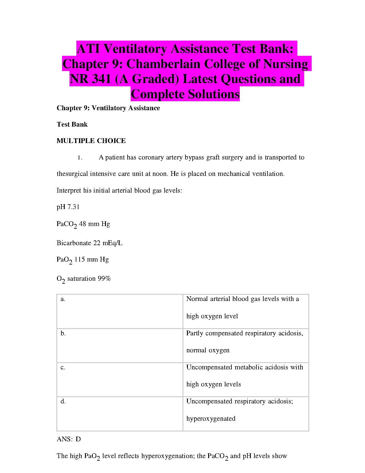 ATI Ventilatory Assistance Test Bank: Chapter 9: Chamberlain College of Nursing NR 341 (A Graded) Latest Questions and Complete Solutions. DOWNLOAD on www.hackedexams.com INSTANTLY.