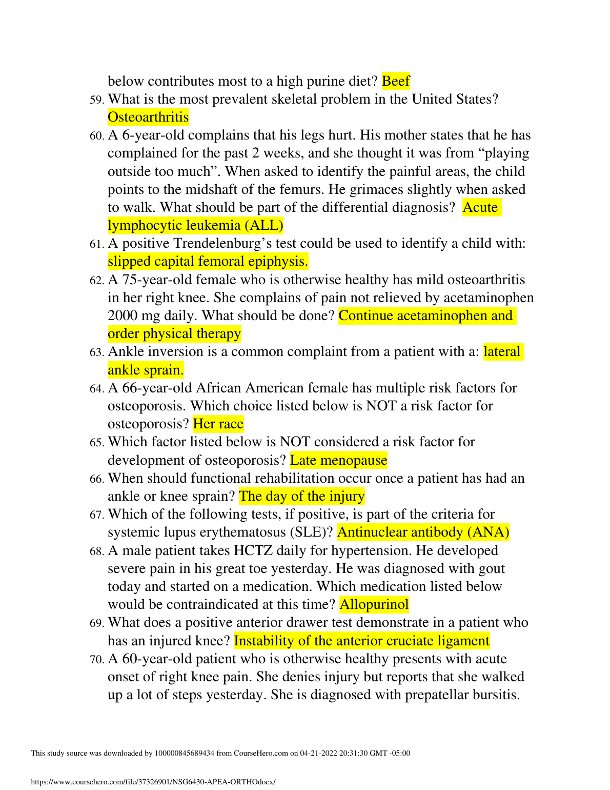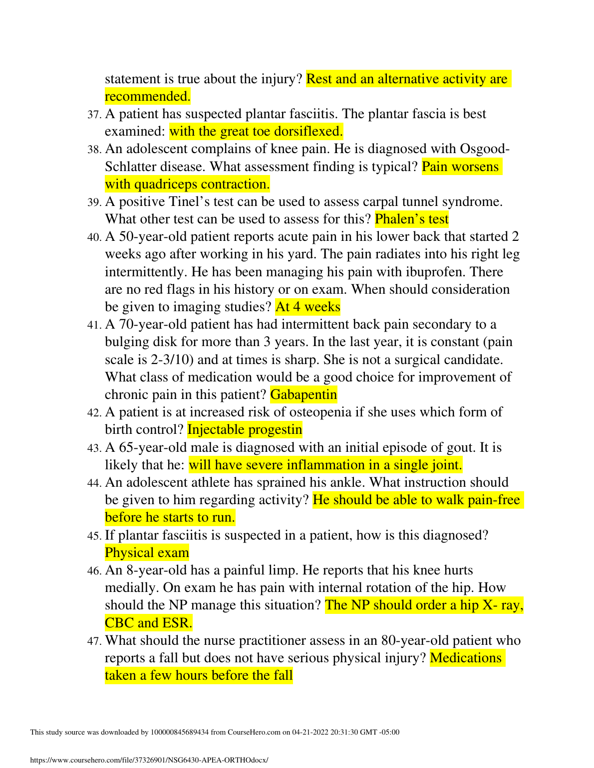 APEA ORTHO NSG6430 UPDATED 2023. DOWNLOAD ON www.hackedexams.com INSTANTLY.