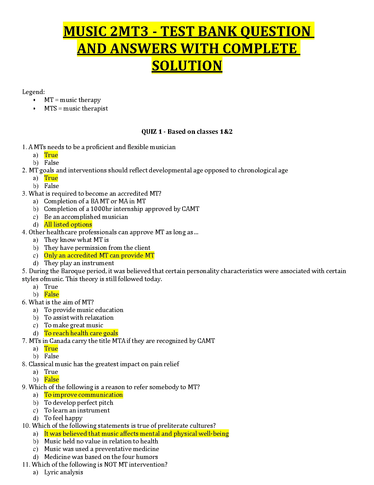 TEST BANK FOR MUSIC 2MT3 QUESTION AND ANSWERS 2023/2024