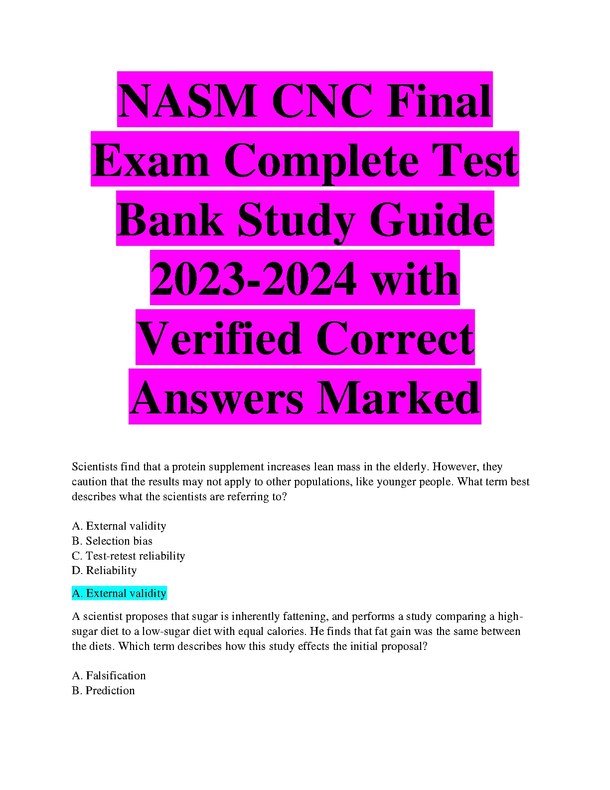 TEST BANK FOR NASM CNC Final Exam Complete Study Guide 2023/2024. DOWNLOAD on www.hackedexams.com INSTANTLY.