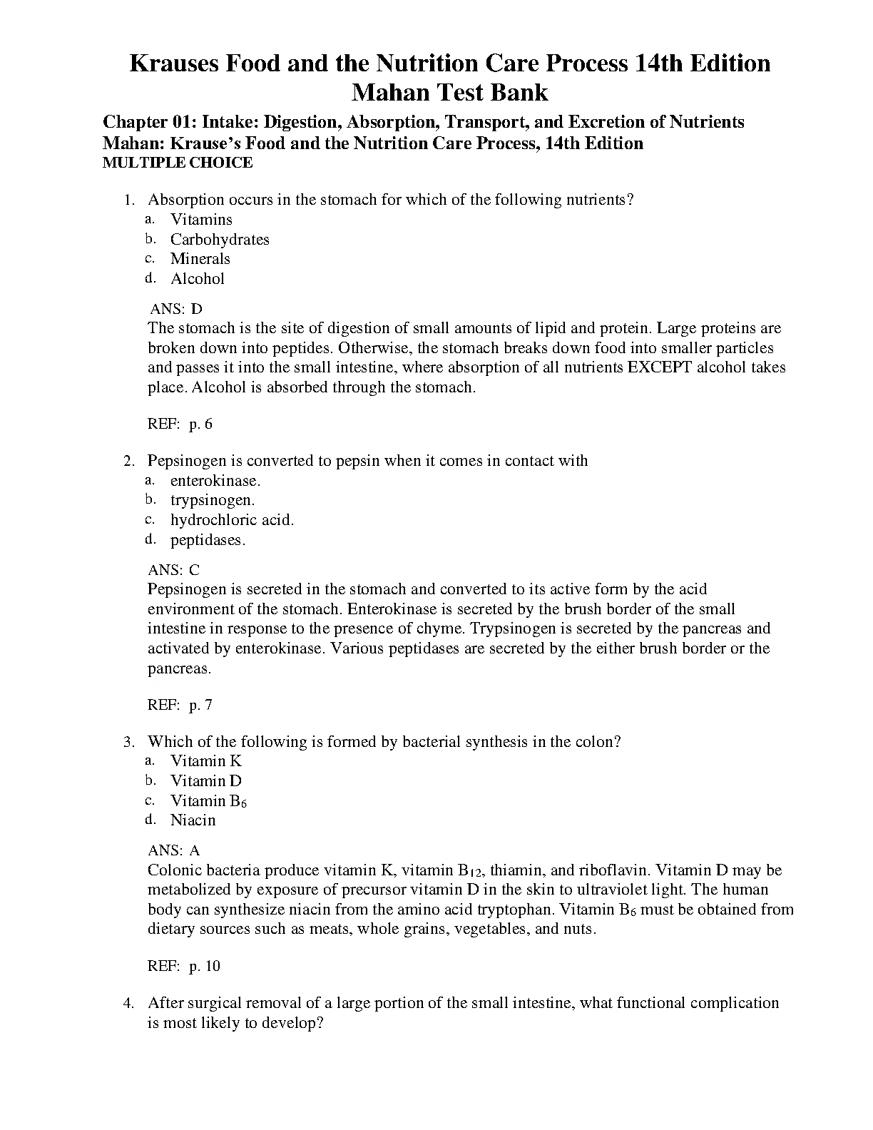 TEST BANK FOR KRAUSE’S FOOD AND THE NUTRITION CARE PROCESS, 14TH EDITION BY MAHAN