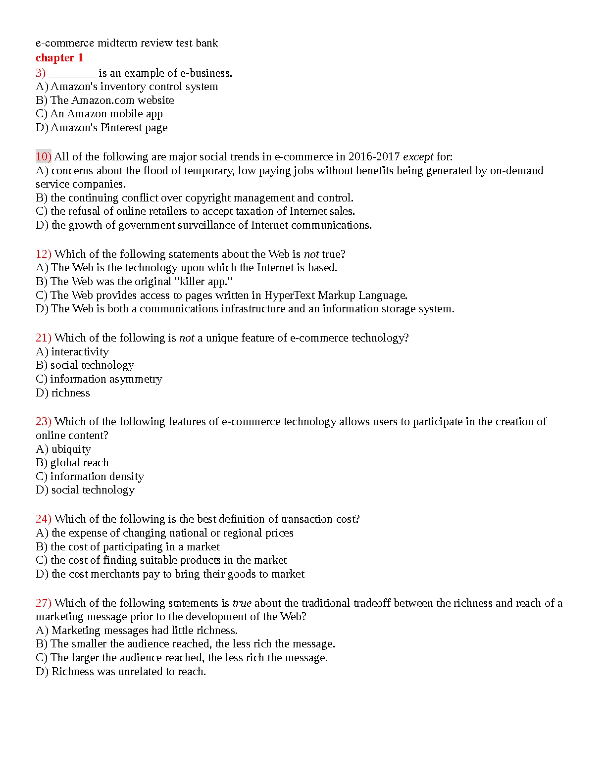 TEST BANK FOR ECOMMERCE MIDTERM REVIEW 2023/2024. DOWNLOAD on www.hackedexams.com INSTANTLY.