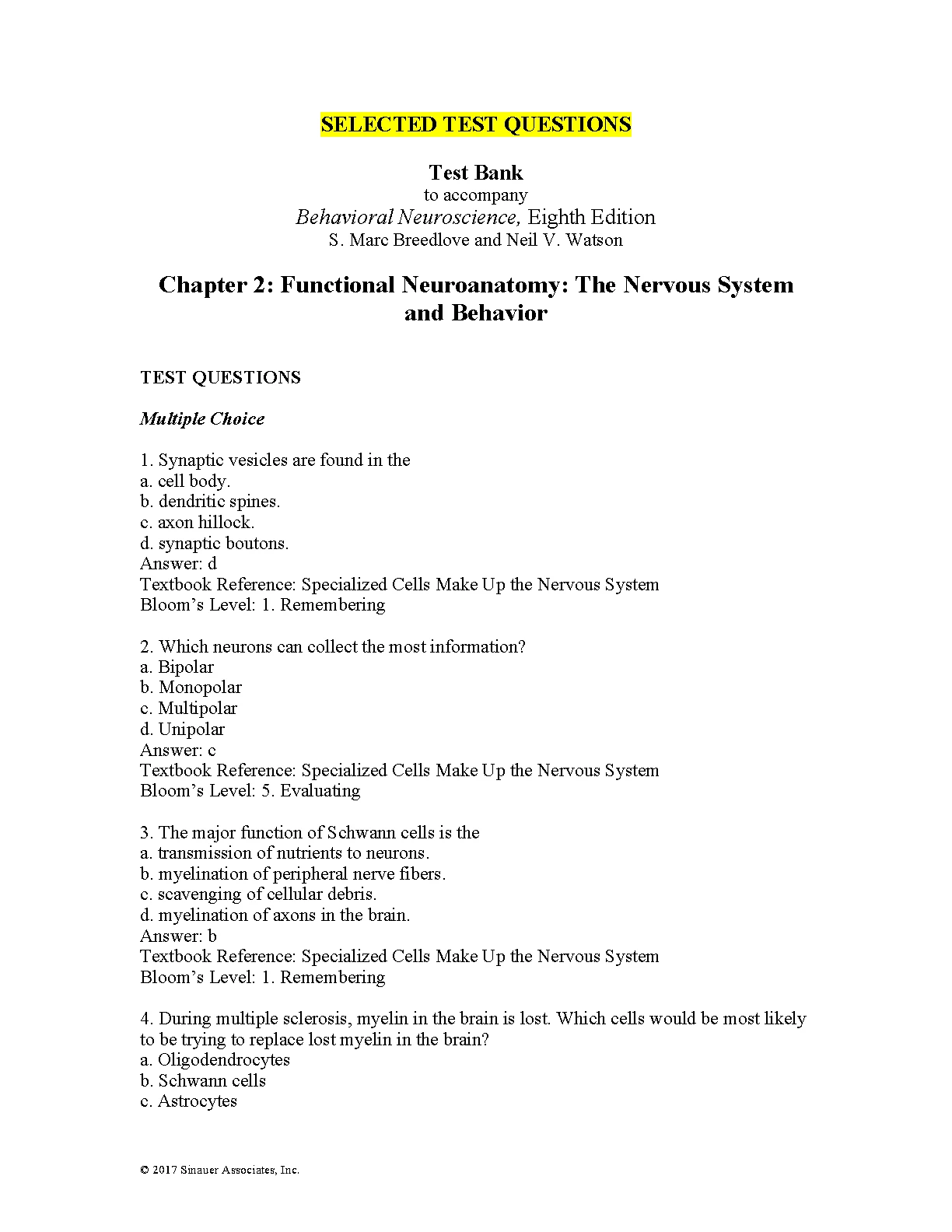 Test Bank to accompany Behavioral Neuroscience, Eighth Edition S. Marc Breedlove and Neil V. Watson