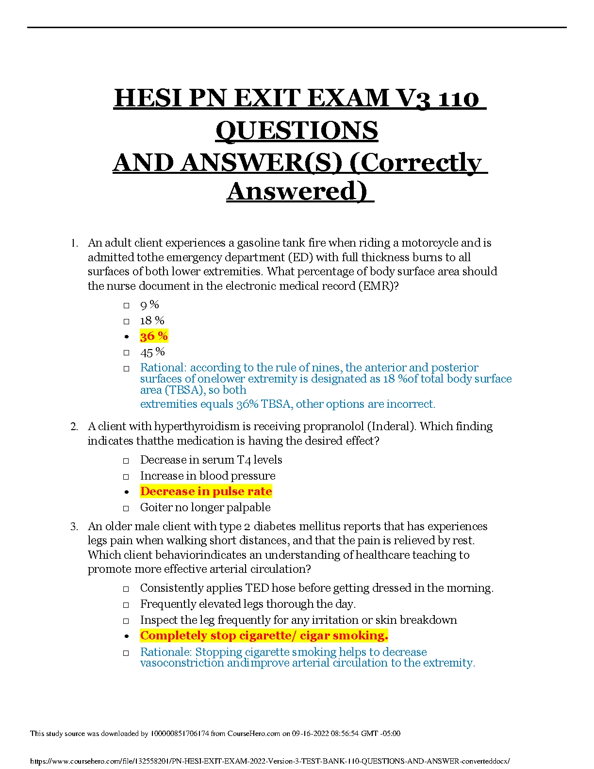 HESI PN EXIT EXAM V3 110 QUESTIONS AND ANSWERS (Correctly Answered) TEST BANK. DOWNLOAD on www.hackedexams.com INSTANTLY.