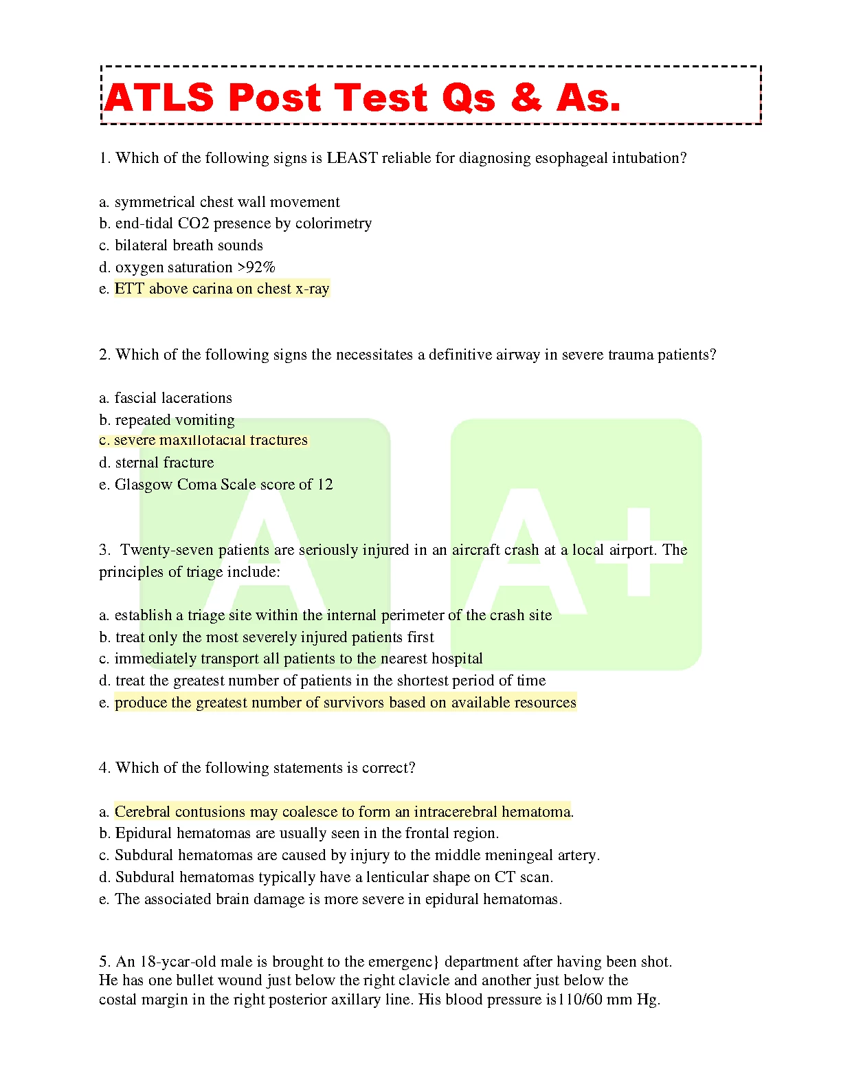 ATLS POST TEST EXAMS QUESTIONS AND ANSWERS LATEST 2023/2024