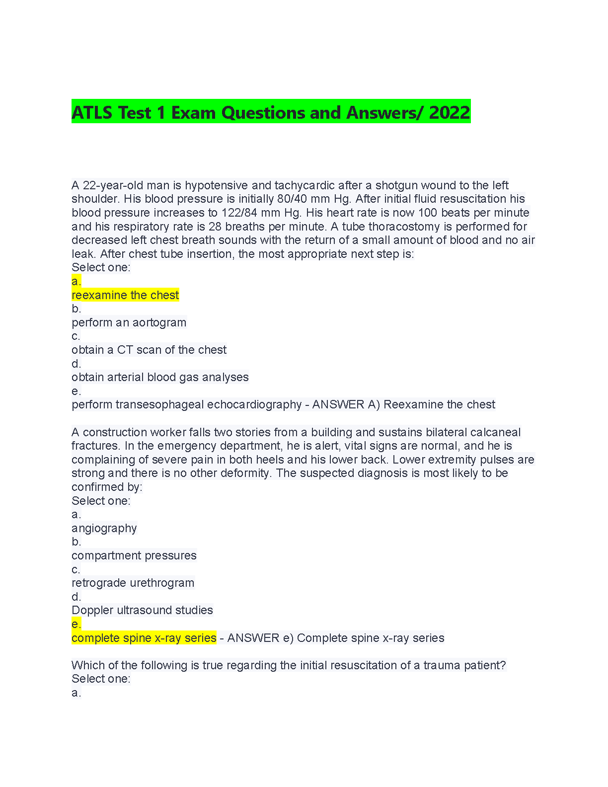 ATLS Test 1 Exam Questions and Answers 2022/2023