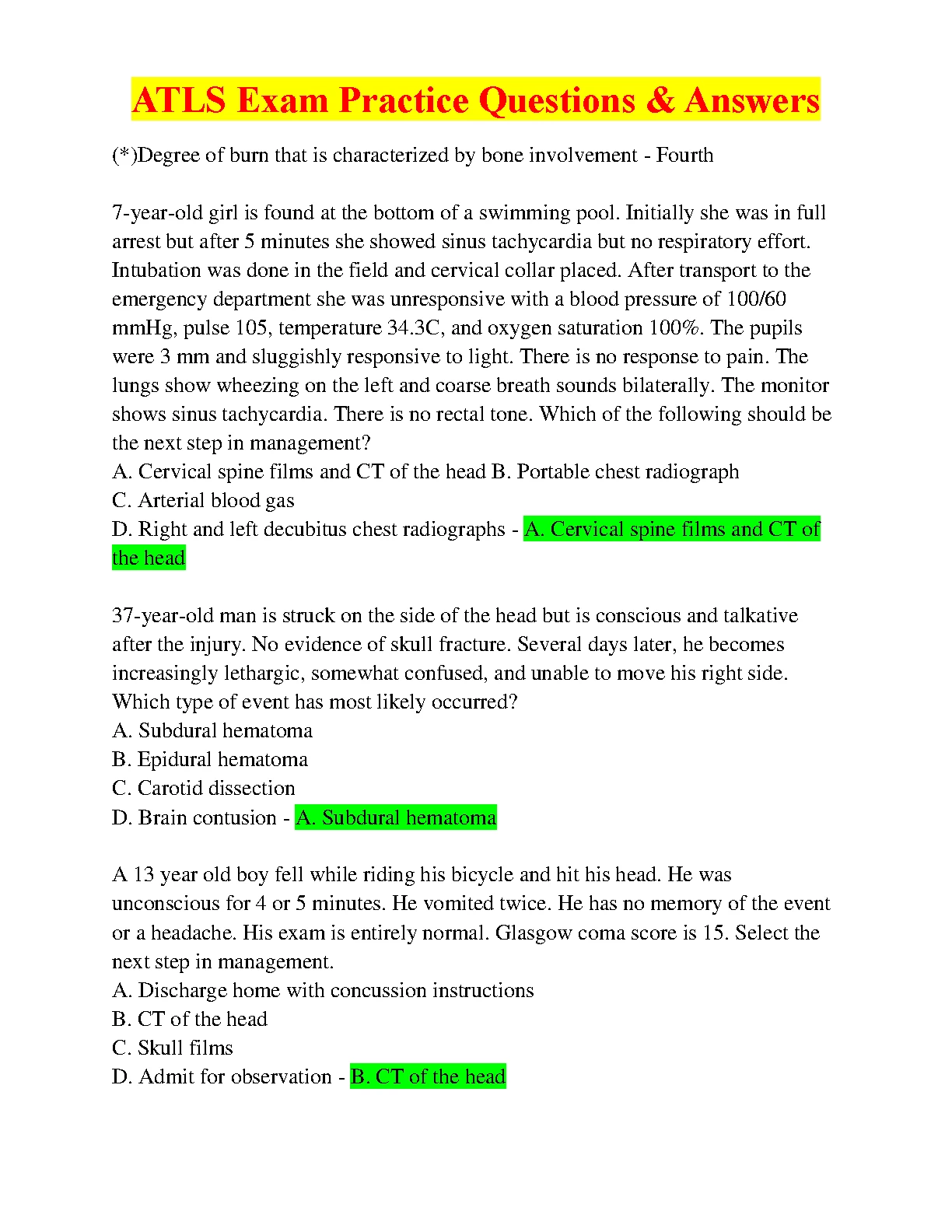 ATLS Exam Practice Questions & Answers. GRADED A+. DOWNLOAD on www.hackedexams.com INSTANTLY.