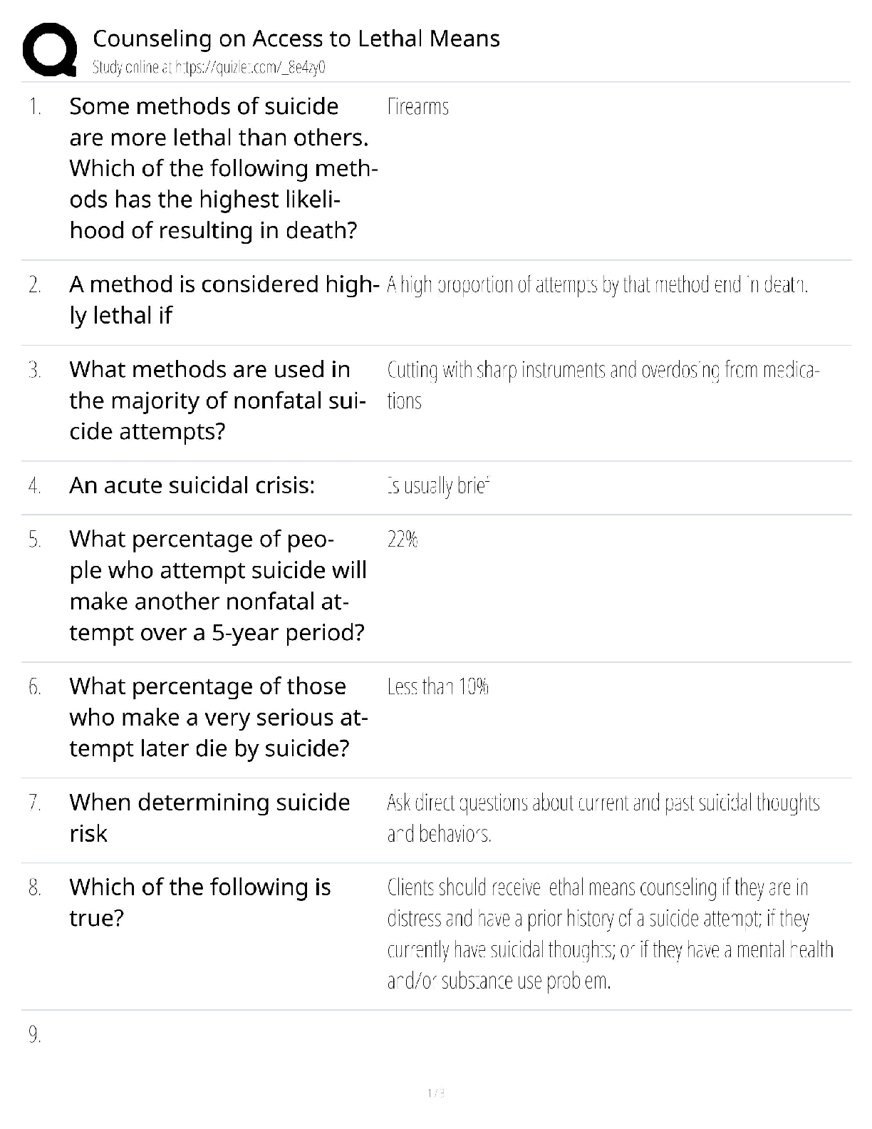 Unlock success in your mental health nursing or counseling courses with our latest 2025/2026 study guide on Counseling on Access to Lethal Means (CALM). This comprehensive resource provides a detailed set of questions and expertly verified answers covering crucial topics such as identifying high-lethality methods, understanding nonfatal attempt statistics, and best practices for determining suicide risk. Designed to help you grasp complex concepts quickly and efficiently, this guide is your ultimate tool for acing your exams and avoiding resits. Perfect for students preparing for HESI, NCLEX, and other critical healthcare assessments. Master the essential knowledge needed for effective suicide prevention counseling and secure a top grade on your first try!
