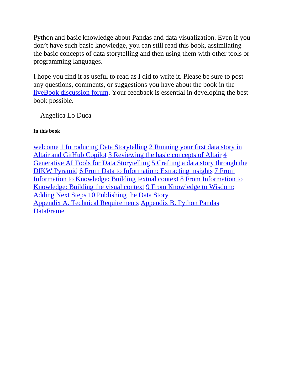 Data Storytelling with Generative AI (MEAP Edition) by Angelica Lo Duca - 2025/2026 Python & Altair Guide to Ace Data Science Exams and Projects